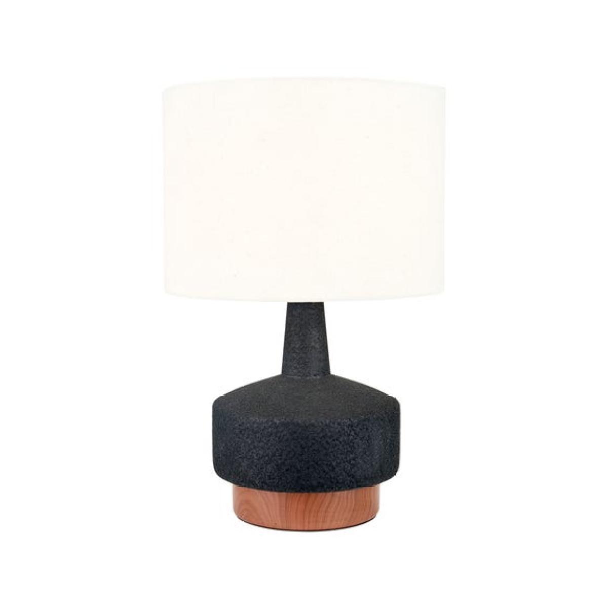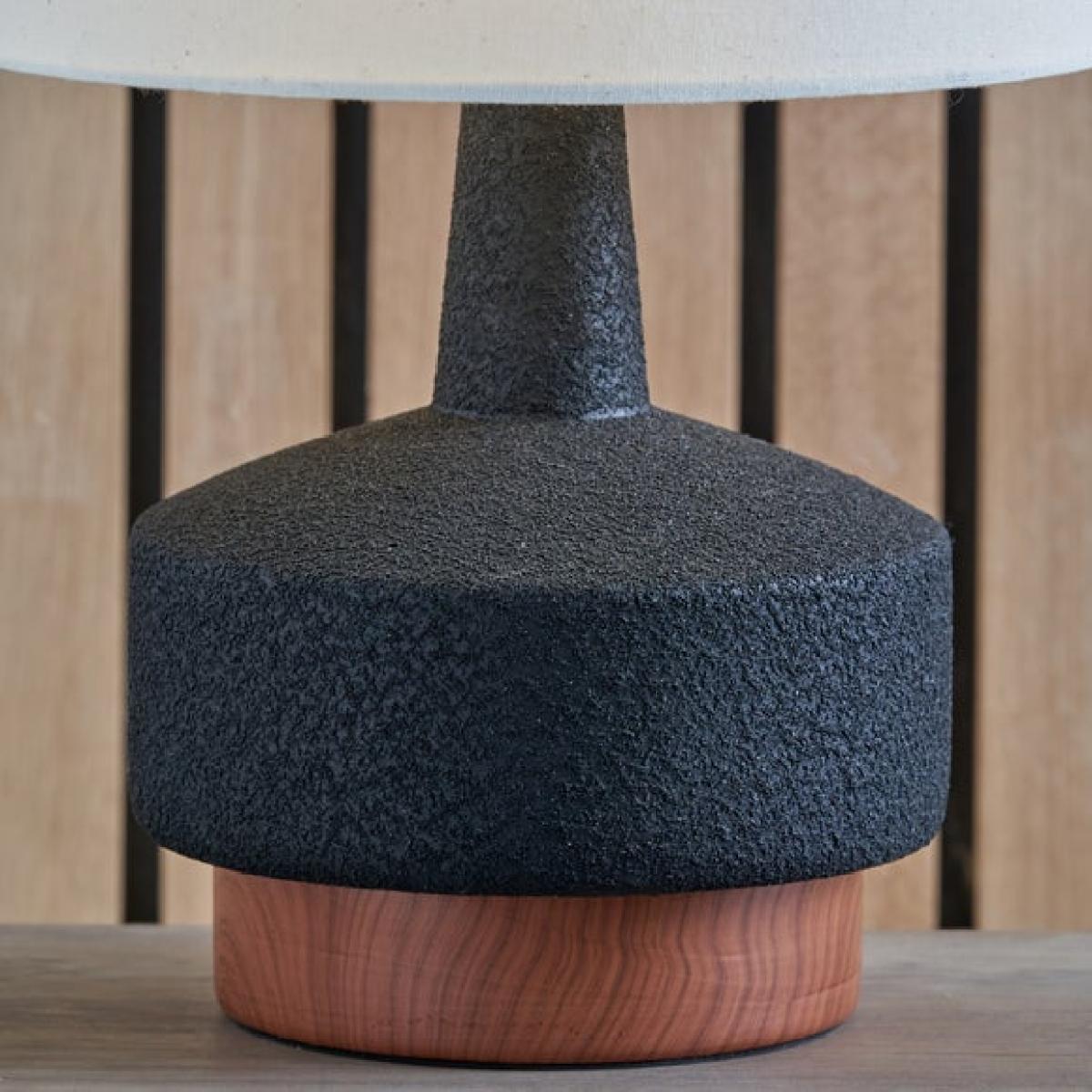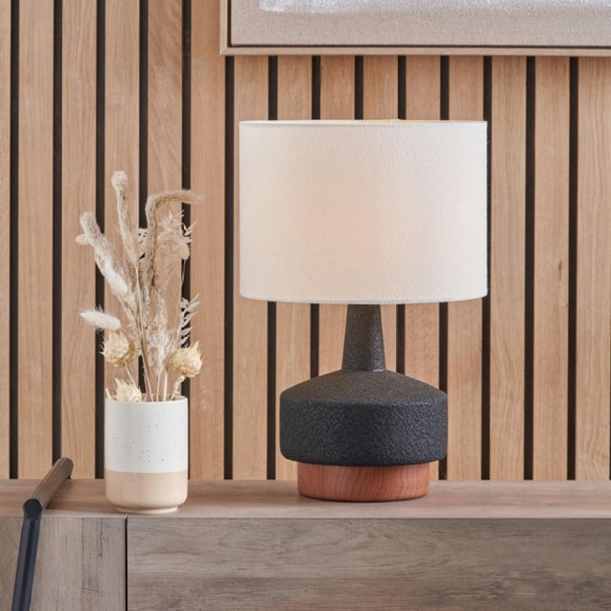 * Stylish, Modern Design * Wood-Grain Effect Base & Sand-Textured Body * Made from Durable Ceramic * Handy In-Line Switch * Requires: Globe Bulb & E27 Cap Type * Available in Multiple Colourways Bring charm to your home with the Pacific Lifestyle Elio Table Lamp. Its sleek shade pairs beautifully with a wood-grain effect base and sand-textured body, creating a warm, natural aesthetic. Made from ceramic and complete with an easy in-line switch, this lamp is a stylish everyday essential.