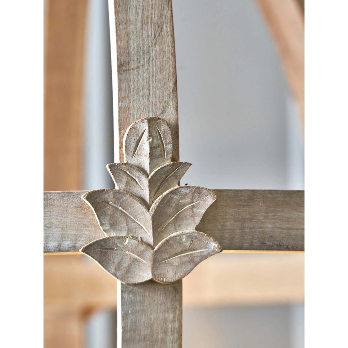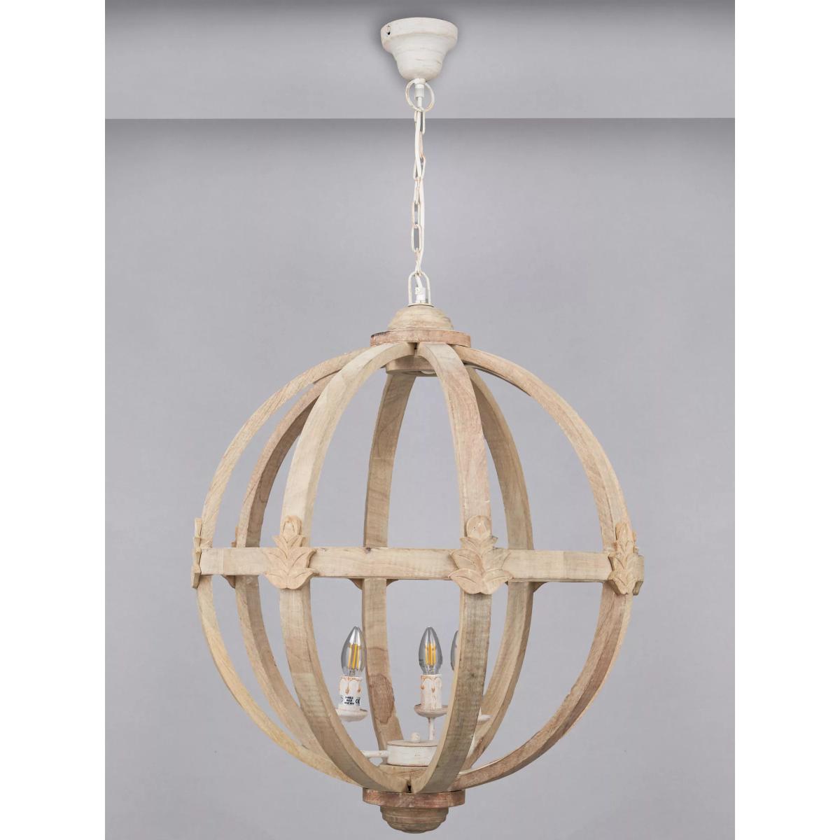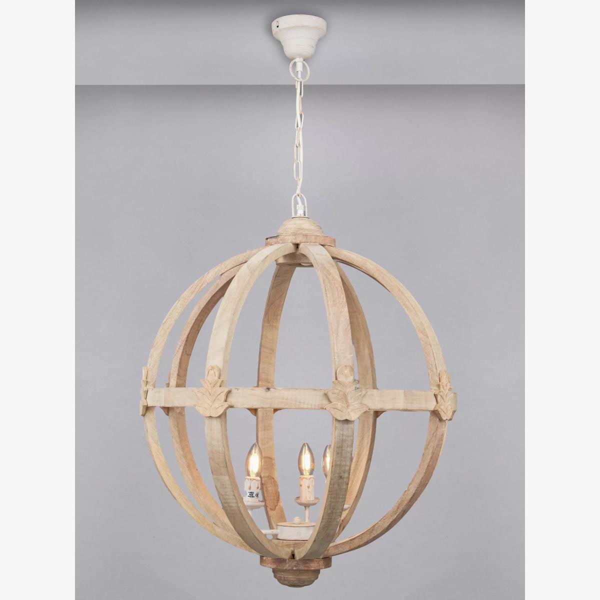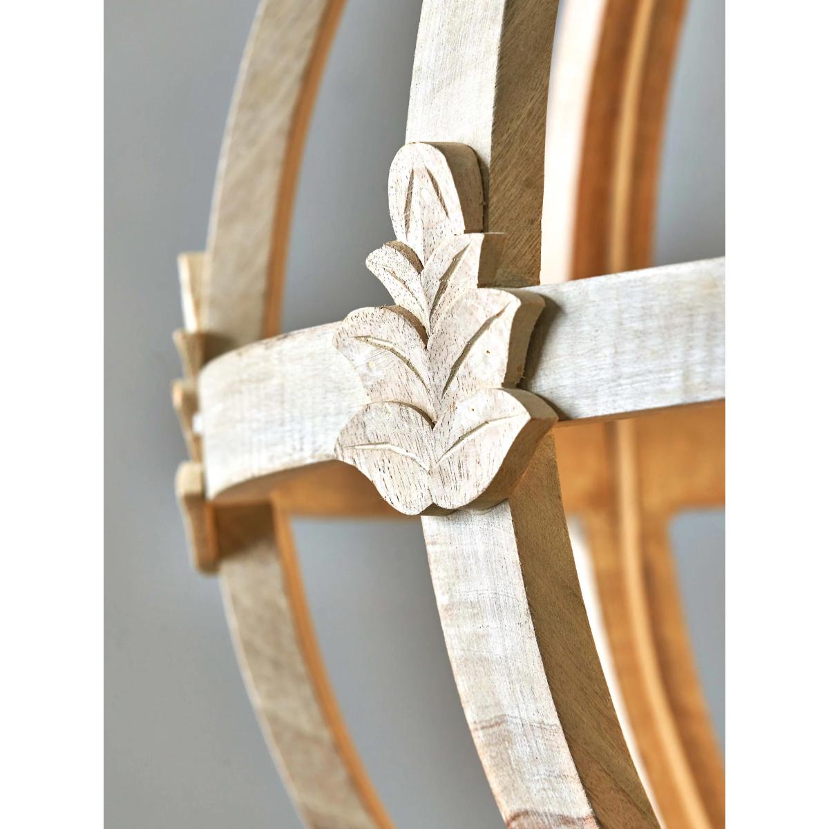 A modern piece with a timeless look, this large ball-shaped frame crafted from mango wood is beautifully hand-carved. Made in India with a white-washed finish, this wooden pendant light will add character to your living space.