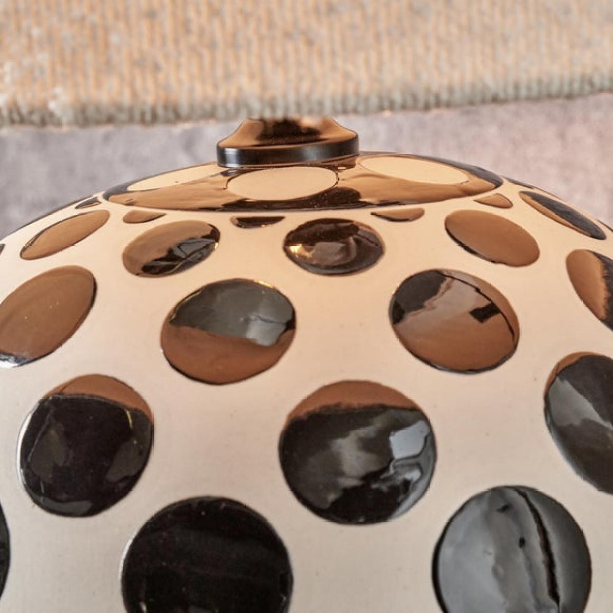 * Bold, Polka Dot Design * Made from Porcelain * Handy In-Line Switch * Requires: Globe Bulb & E27 Cap Type Make a bold statement with the Pacific Lifestyle Larisa Polka Dot Table Lamp. Its eye-catching porcelain base and spherical shape bring playful sophistication, while the in-line switch ensures practicality.