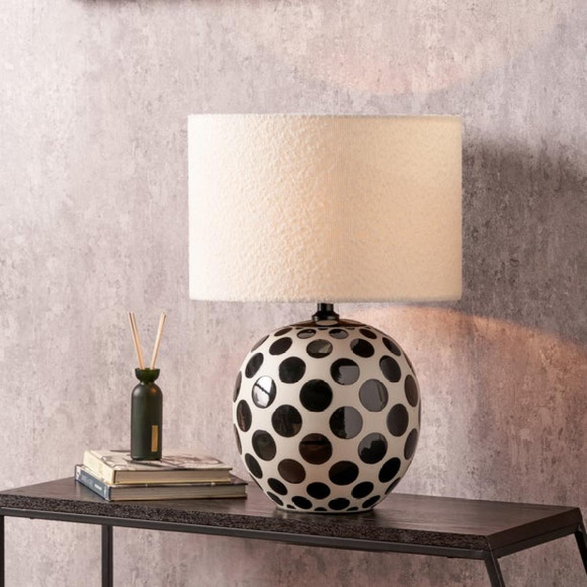 I love this table lamp for its playful polka dot design, which can add a fun yet chic touch to a variety of interiors. It’s versatile enough to work well in both contemporary living spaces and more eclectic setups, providing a focal point without overwhelming the room. Practical styling tips include pairing it with minimalist accessories to let the pattern stand out, or placing it on a desk or sideboard alongside neutral-toned pieces for a touch of personality. This lamp also works great in a nursery or kids' room, adding a whimsical vibe, while its neutral black-and-white palette keeps it adaptable across different colour schemes. Overall, it’s a lively yet practical piece that can easily be integrated into a range of interiors.