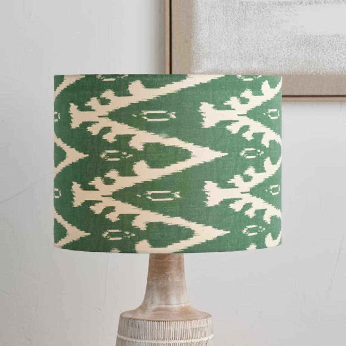 I love this drum lamp shade for its bold ikat pattern and fresh colour palette, which can really lift a room’s aesthetic. It works particularly well in contemporary or boho interiors, adding a touch of pattern and texture without overwhelming the space. Practical styling tips include pairing it with neutral furniture to let the shade stand out, or layering with textured fabrics like linen or rattan for a natural, relaxed vibe. It’s versatile enough to sit in living areas or bedrooms, and its size makes it ideal for table or desk lighting, adding both function and statement style.