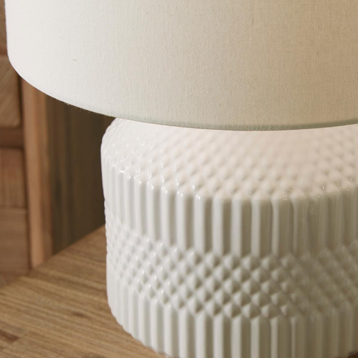 With its crisp white finish, the Meribel Short Table Lamp from Pacific Lifestyle is sure to be a striking addition to your home. Complete with a clean white lampshade paired with a glazed ceramic base, this light is a stunner. Take a closer look at the base though, this is where the real excitement is! Finished with gorgeous textured detail, it is sure to turn heads wherever you place it. Plus, with a tall version available, why not create a matching lighting scheme throughout your home.