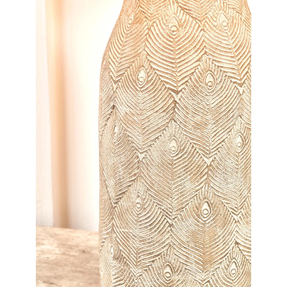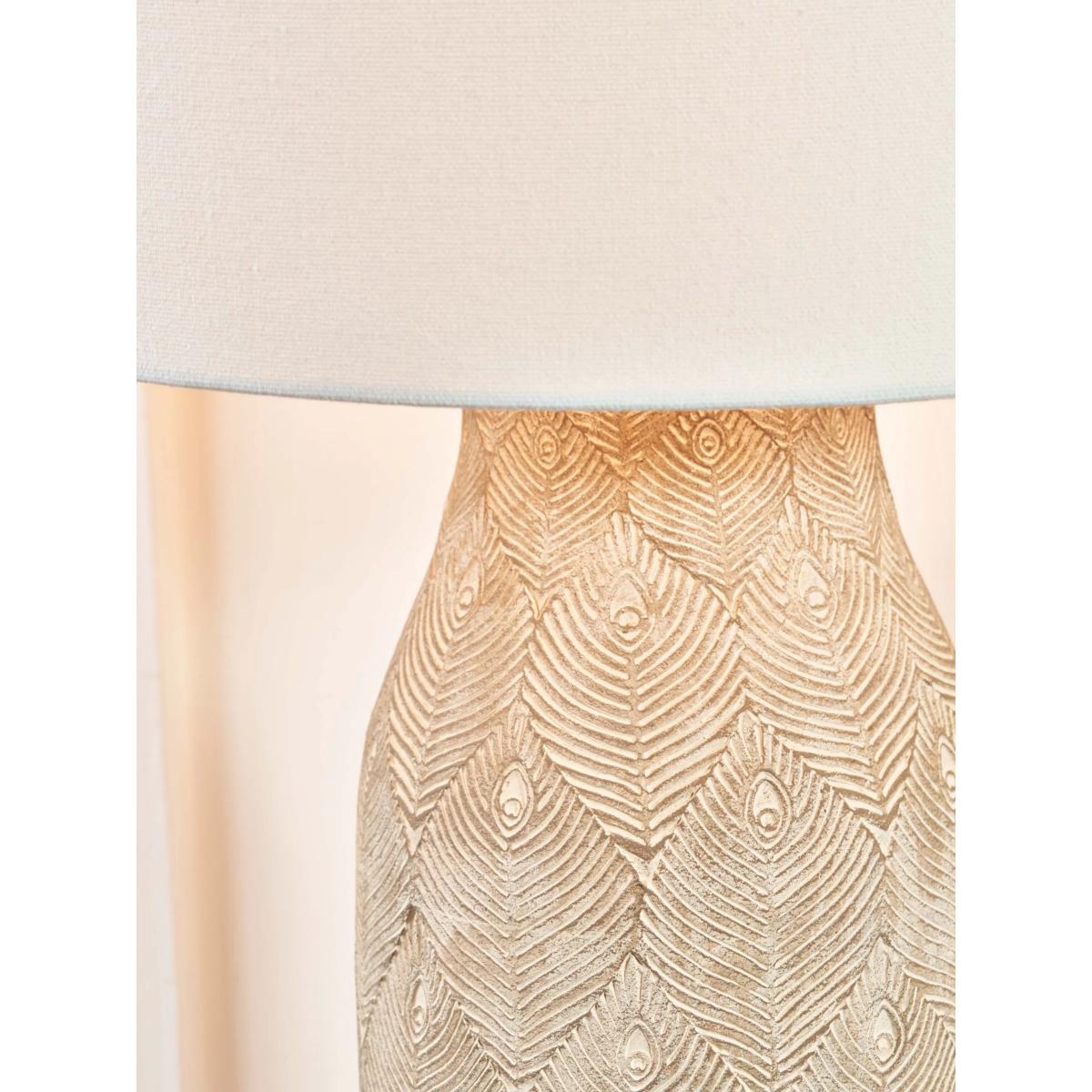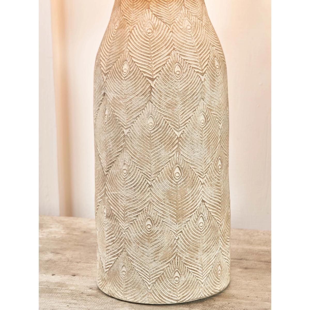 Light up your home with the stylish Palawan table lamp. This stoneware lamp will add contemporary flair to any space. The eye catching engraved design creates a unique look. Topped with a cylinder lampshade that allows light to filter through.
