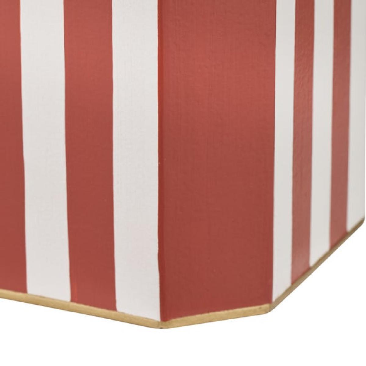 I love this lamp because of its bold, striped design that adds a playful yet sophisticated touch to any space. It works particularly well in coastal or Scandinavian-inspired interiors, where clean lines and subtle colour schemes are key. For styling, consider pairing it with neutral accessories to let the stripes stand out, or add complementary coral or terracotta accents to enhance its warm tones. It’s perfect as a bedside or side table lamp, providing both practical lighting and visual interest, making it an easy way to elevate a room’s overall aesthetic.