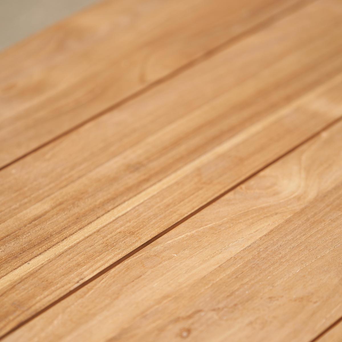 * 1 x Dining Table and 8 x Chairs * Natural teak wood frame * Linen fabric * Season proof Featuring a rounded rectangular dining table and graceful curved-back chairs, this set is made from long-lasting teak wood and accented with light linen natural oatmeal Olefin fabric cushions. These cushions are resistant to stains, fading, and fire retardant, ensuring lasting quality. A 3-Year Structural Guarantee is included, providing peace of mind. Protect your set by using an Aerocover when not in use to maintain its pristine appearance.