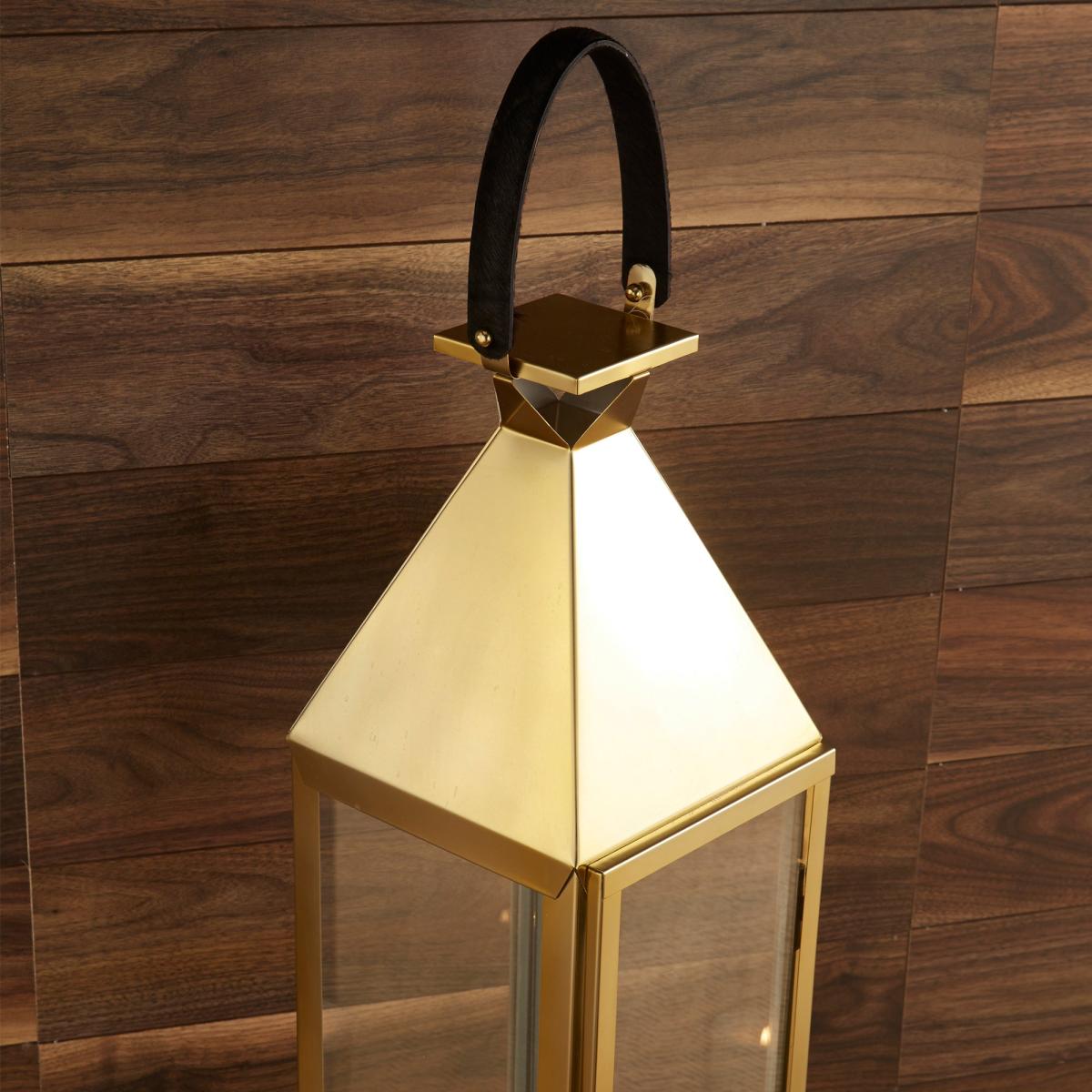 This beautiful stainless steel gold lantern is handcrafted and electroplated to give a stunning feel and a stunning glow. The leather handle makes gives this lantern a quality feel meaning this piece will complement an array of home decors.