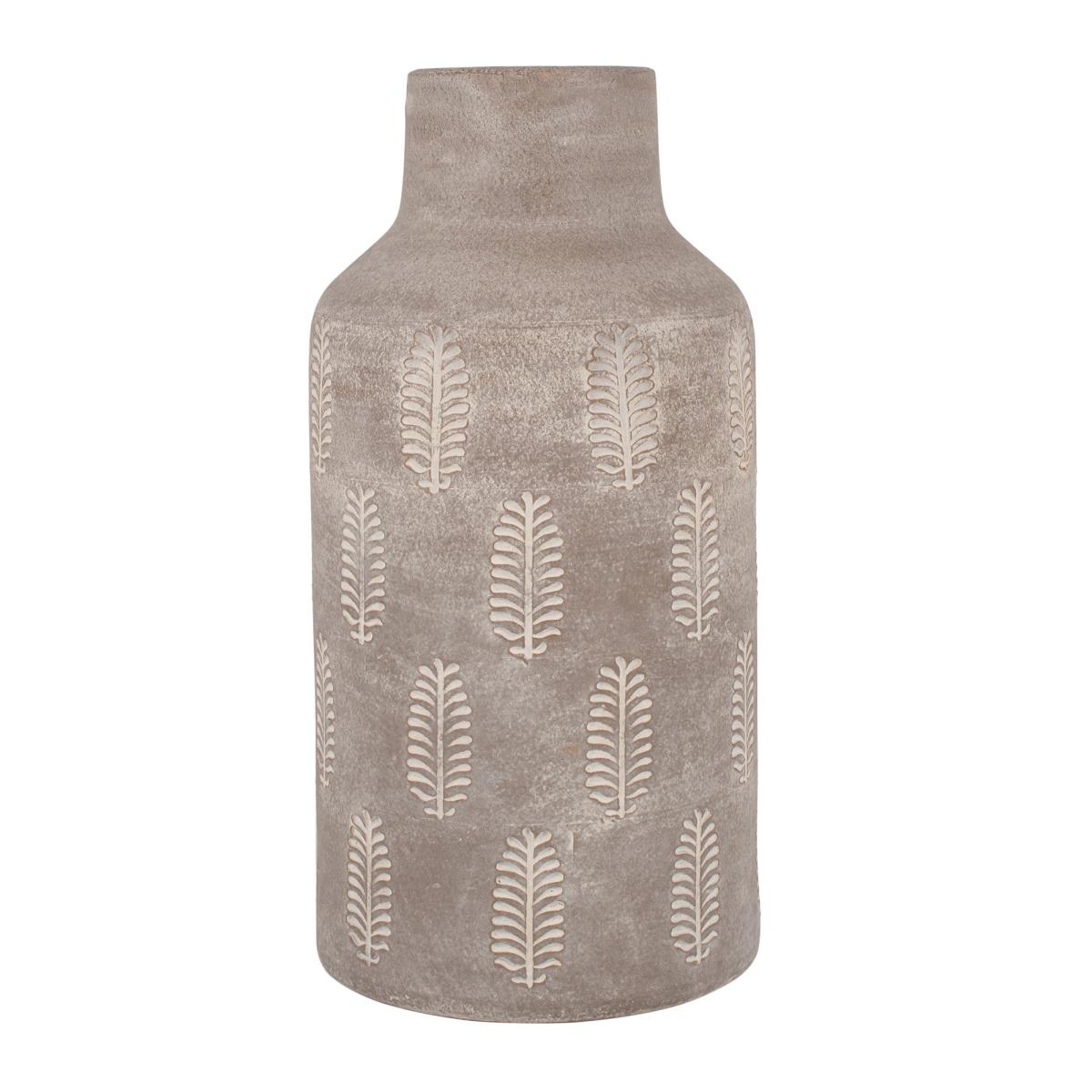 This stylish hand thrown, crafted and painted vase is beautifully embossed and will complement an array of home decors. The rustic and unique look will add a touch of style to any room with its natural colour.