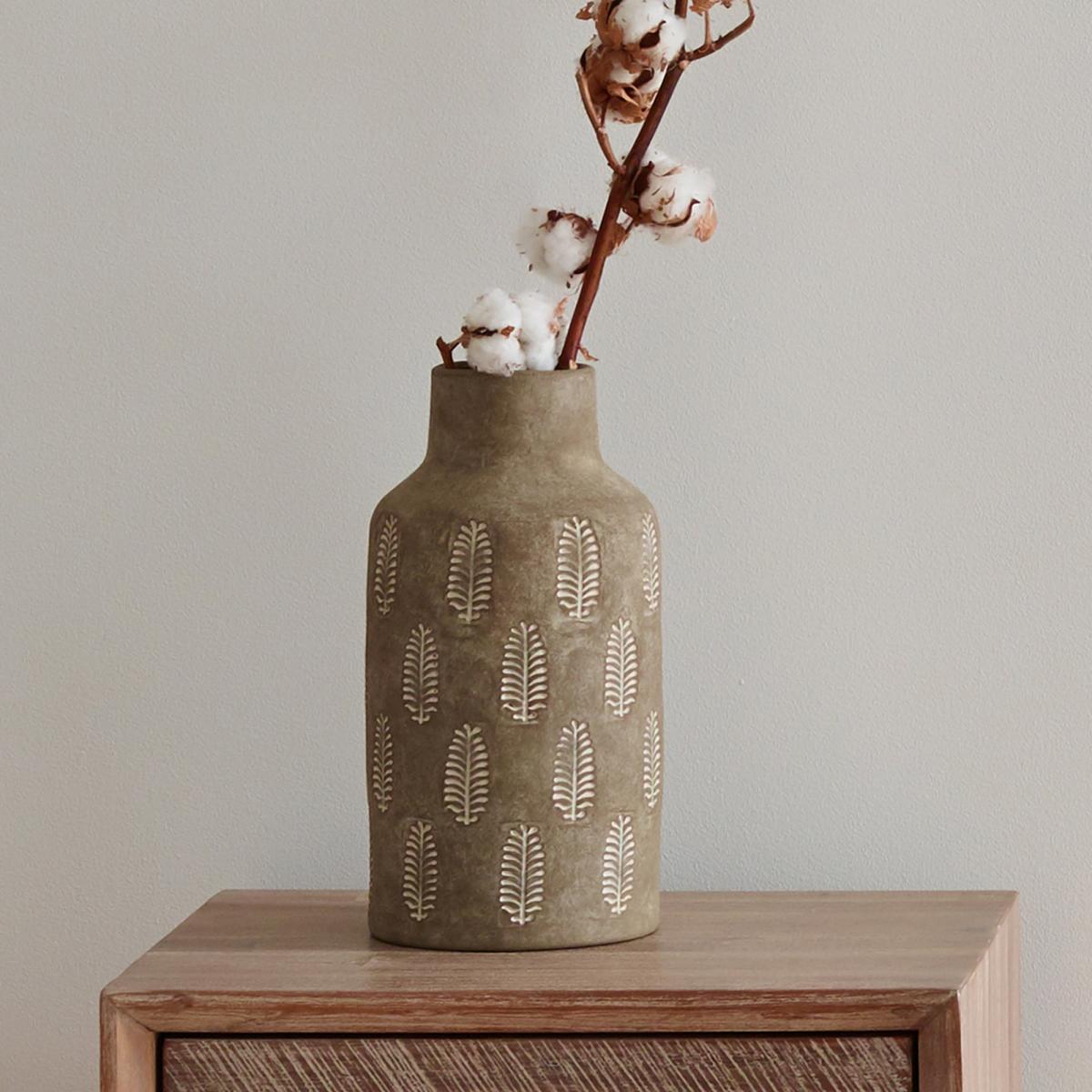 I love this vase for its textured, earthy appeal that adds subtle depth to any space. It works particularly well in minimalist or Scandinavian interiors, where natural materials and neutral tones are key. For styling, try pairing it with dried flowers or branches, like cotton or pampas grass, for a laid-back, organic vibe. It also makes a lovely standalone piece on a sideboard or mantel, bringing craft and texture without overwhelming the room. Keep in mind its understated colour and finish, so it complements rather than competes with other accessories in your scheme.