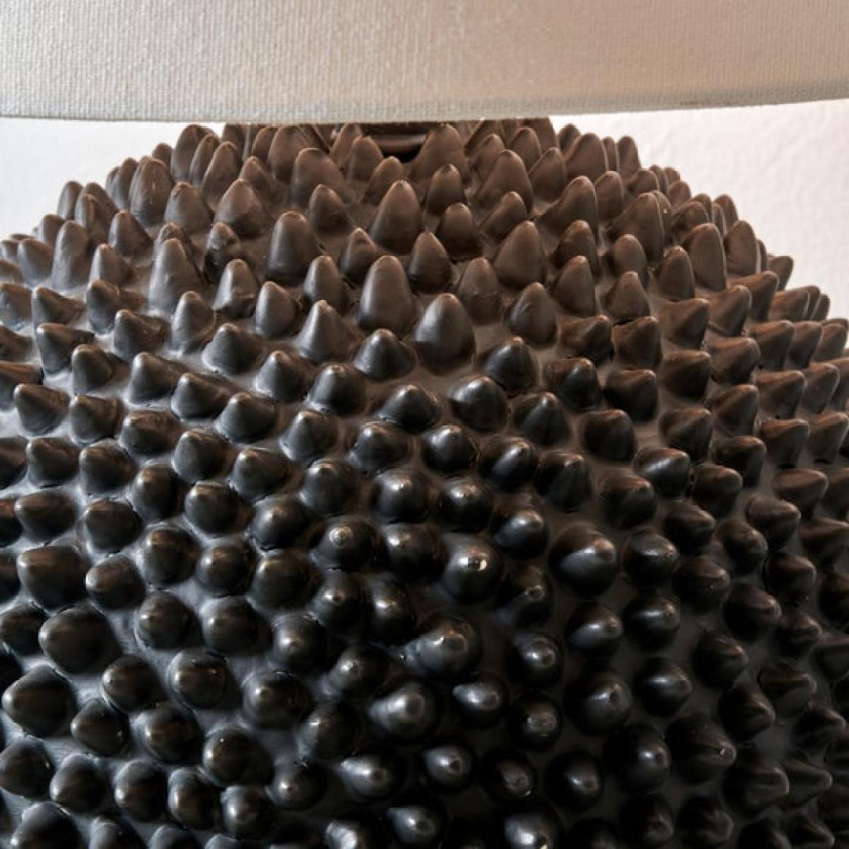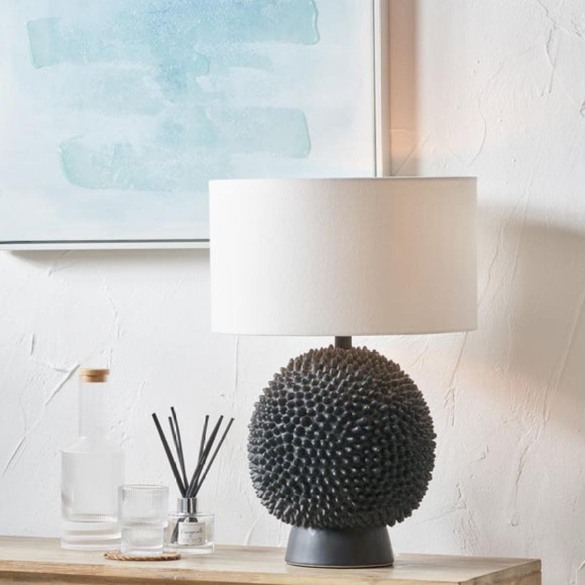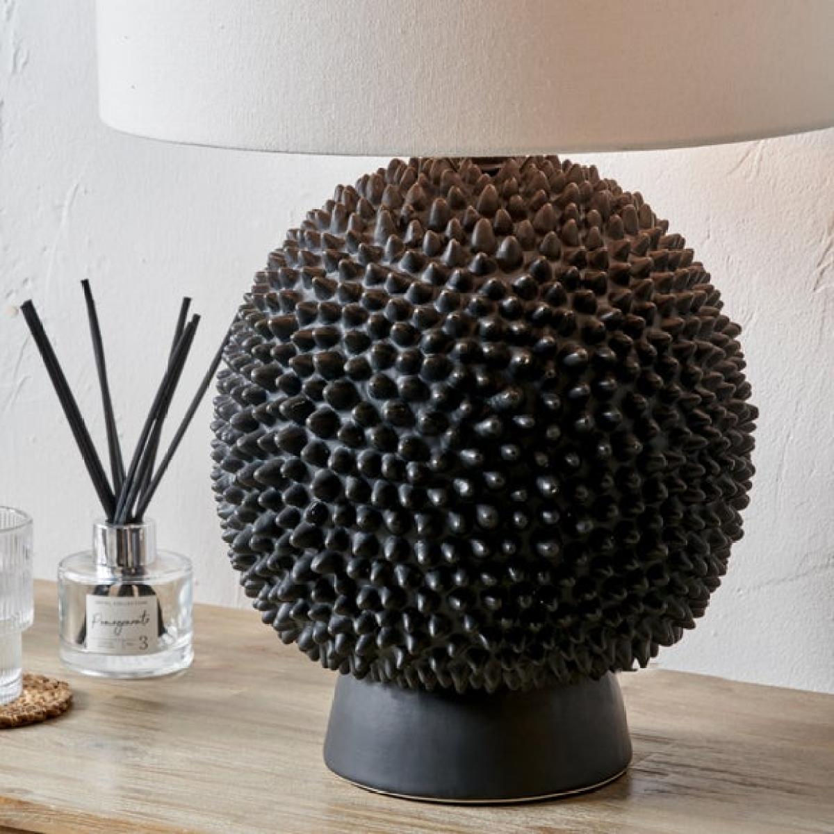 * Unusual, Sea Urchin Inspired Design * Made from Durable Ceramic * Convenient In-Line Switch * Requires: Globe Bulb & E27 Cap Type * Available in Multiple Colourways Make a bold statement with the Pacific Lifestyle Wrenley Sea Urchin Table Lamp. Its distinctive ceramic design, inspired by sea urchins, adds a unique touch to any space. It's complete with an in-line switch for easy control.