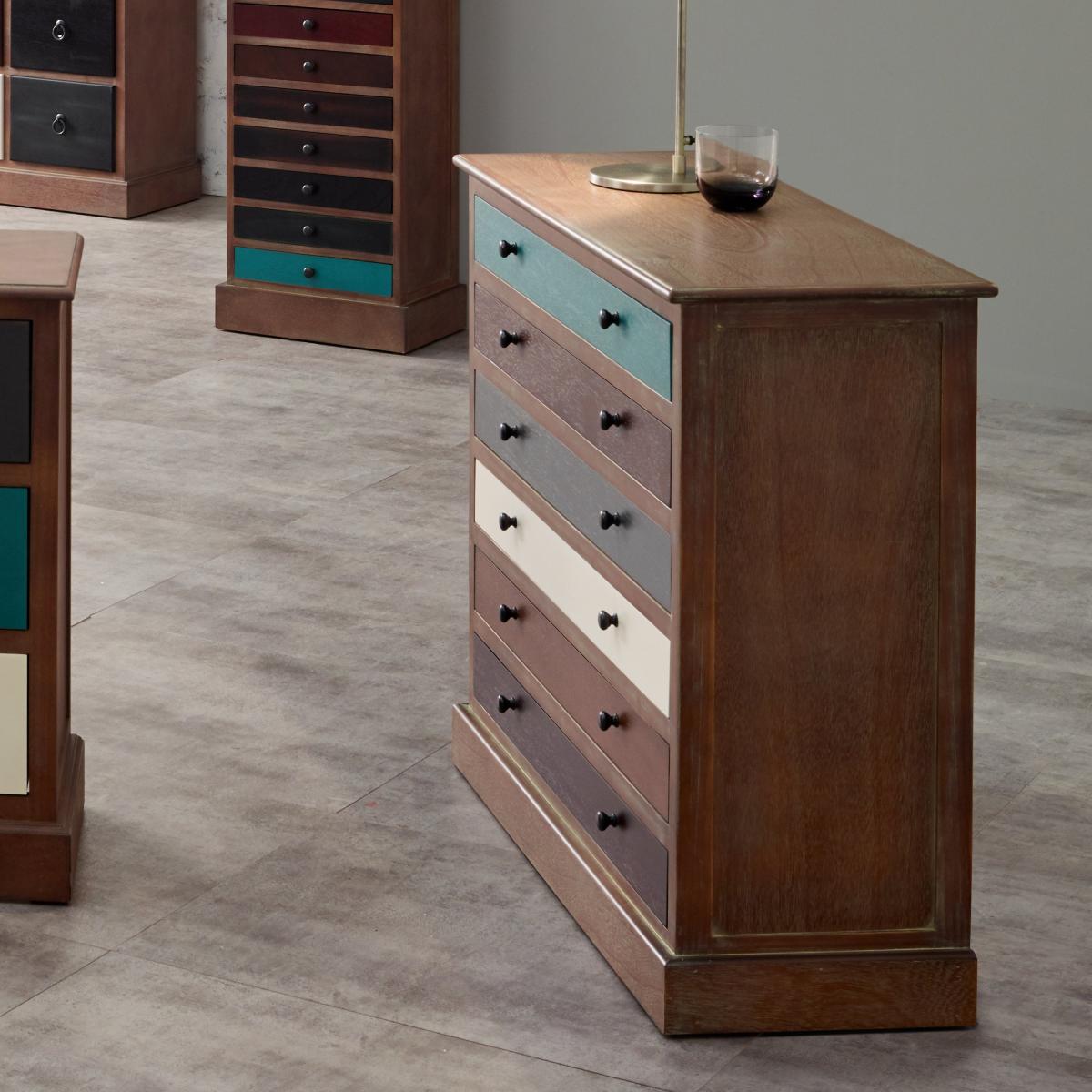 I’m a fan of this pine-brown 6-drawer chest for its clean lines and mix of muted drawer colours - it adds character without overwhelming a space. Its compact, tall profile makes it ideal for narrow hallways, home offices or bedrooms where extra storage is needed but floor space is limited. Styling it is straightforward: layer a low table lamp, a small plant in a terracotta pot and a neat stack of books on top to pick up the drawer hues. Pair with neutral walls and matte-black or brass accents to highlight the simple hardware, and use the drawers to organise stationery, linens or wardrobe off-season items.