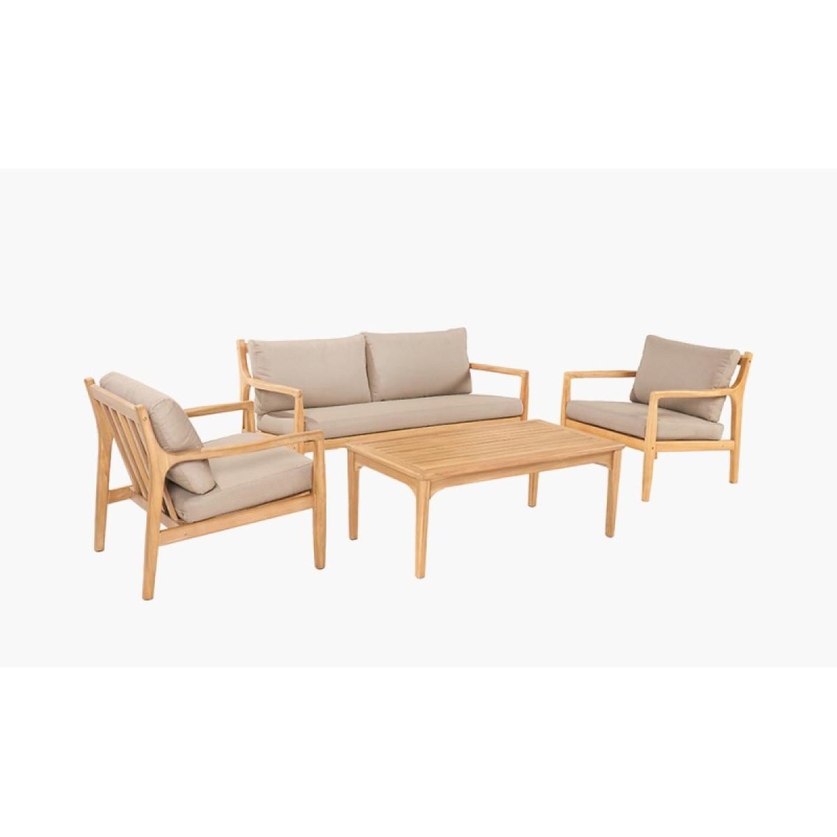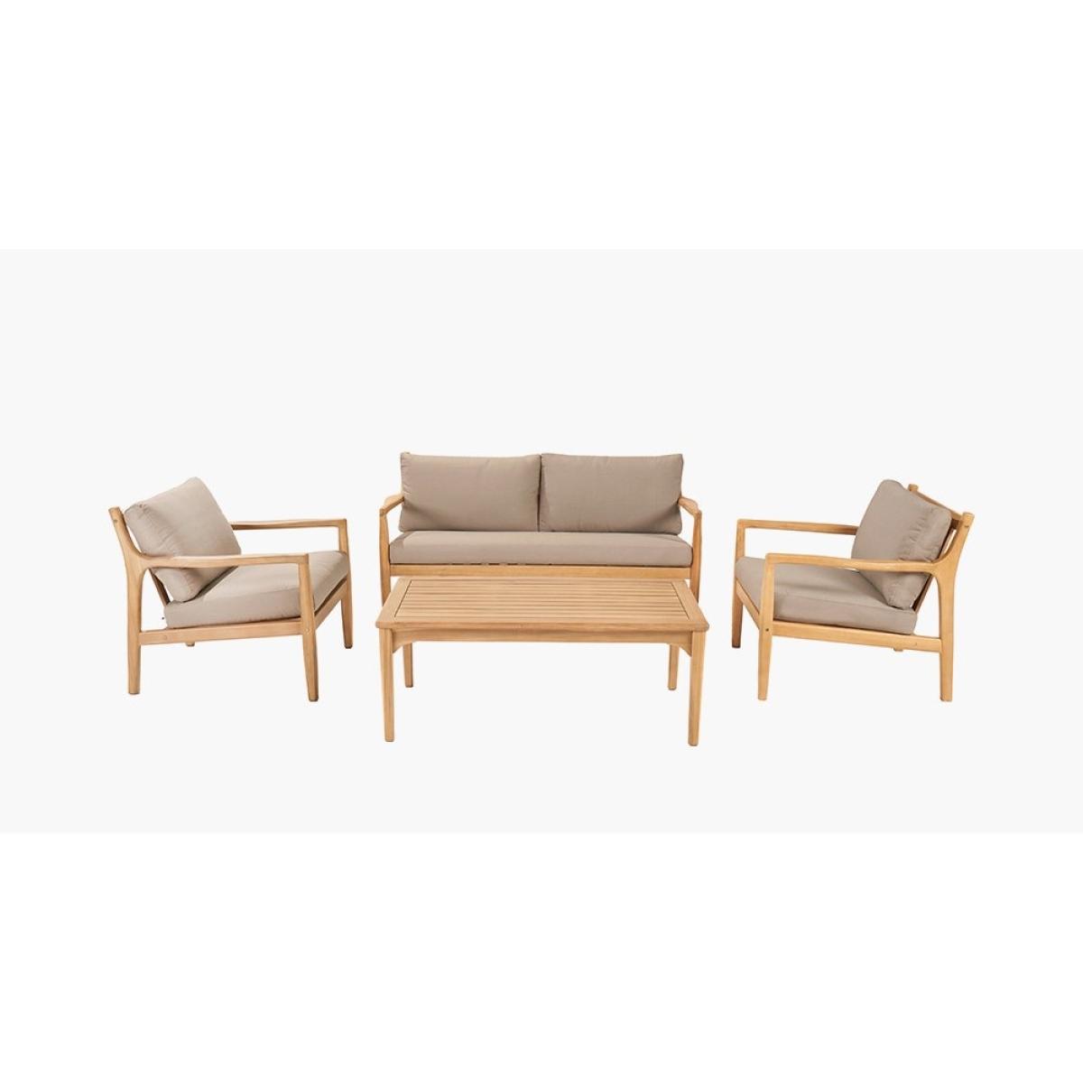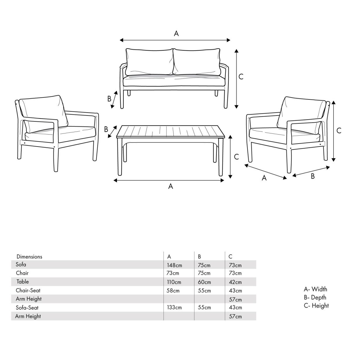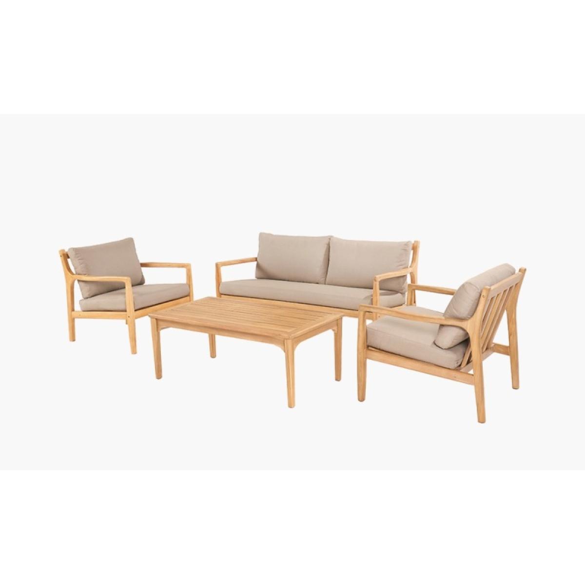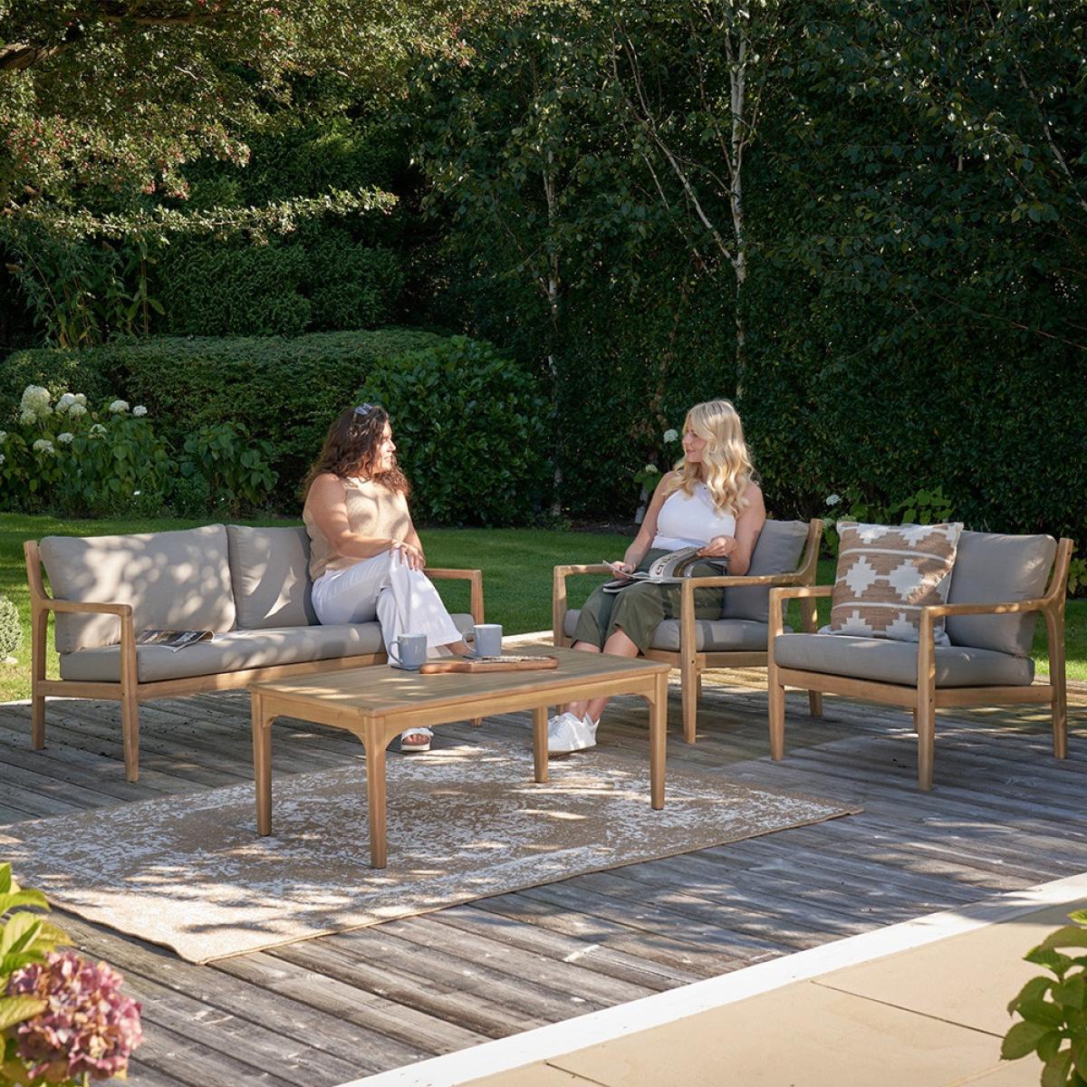 Make a statement in your outdoor space with the Pacific Malta 4-Seat Outdoor Seating Set, a perfect blend of style, comfort, and durability. Crafted from premium Acacia wood, this elegant seating set showcases a warm, natural wood finish that enhances any patio, garden, or deck. The slimline yet sturdy frame provides lasting strength, while the light linen taupe cushions add a touch of sophistication and plush comfort. The weather-resistant cushions are crafted with high-quality fabric, ensuring durability and easy maintenance, making it the perfect addition to your outdoor retreat. Whether you're hosting friends or enjoying a quiet evening, the Pacific Malta set offers timeless charm and inviting comfort. KEY FEATURES: Set includes: 1 x Two-seater Sofa, 2 x Armchairs, 1 x Rectangular Coffee Table Light Teak Effect Acacia Wood frame Light Linen Taupe Fabric Cushions Fire Retardant Cushions 3 Year Structural Guarantee DIMENSIONS: Overall footprint: 3.15m x 1.7m approx Two Seater Sofa: Height: 73cm Width: 148cm Depth: 75cm Armchair: Height: 73cm Width: 73cm Depth: 75cm Coffee Table: Height: 42cm Width: 110cm Depth: 60cm Please note, all screens vary in colour reproduction and whilst every effort has been made to display the colour as accurately as possible it is for guidance only. Scatter cushions and accessories pictured are for demonstration purposes only and are not included.