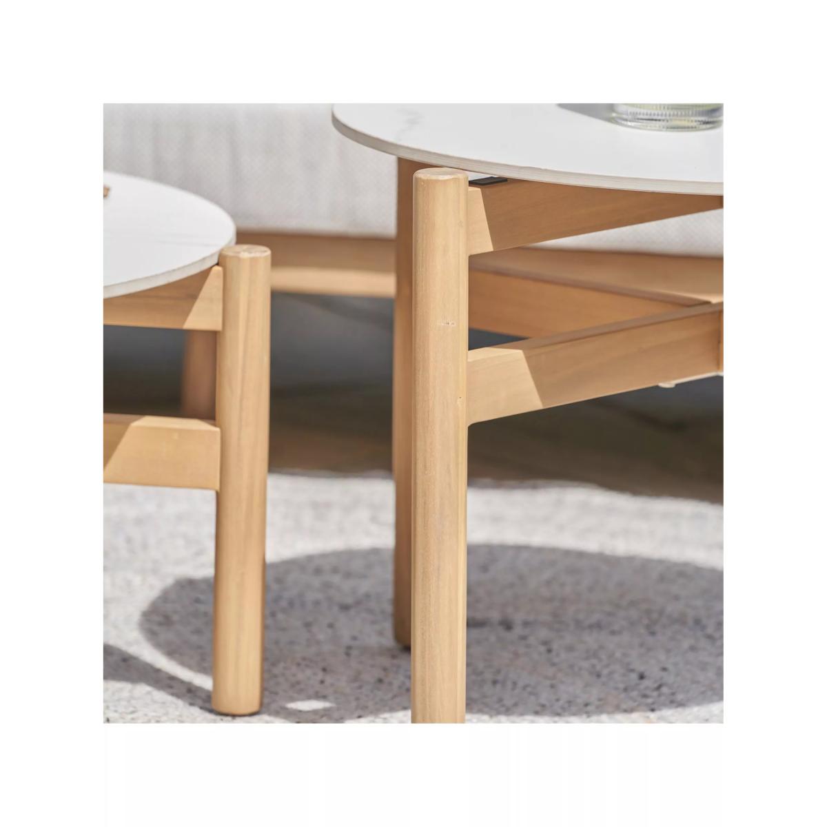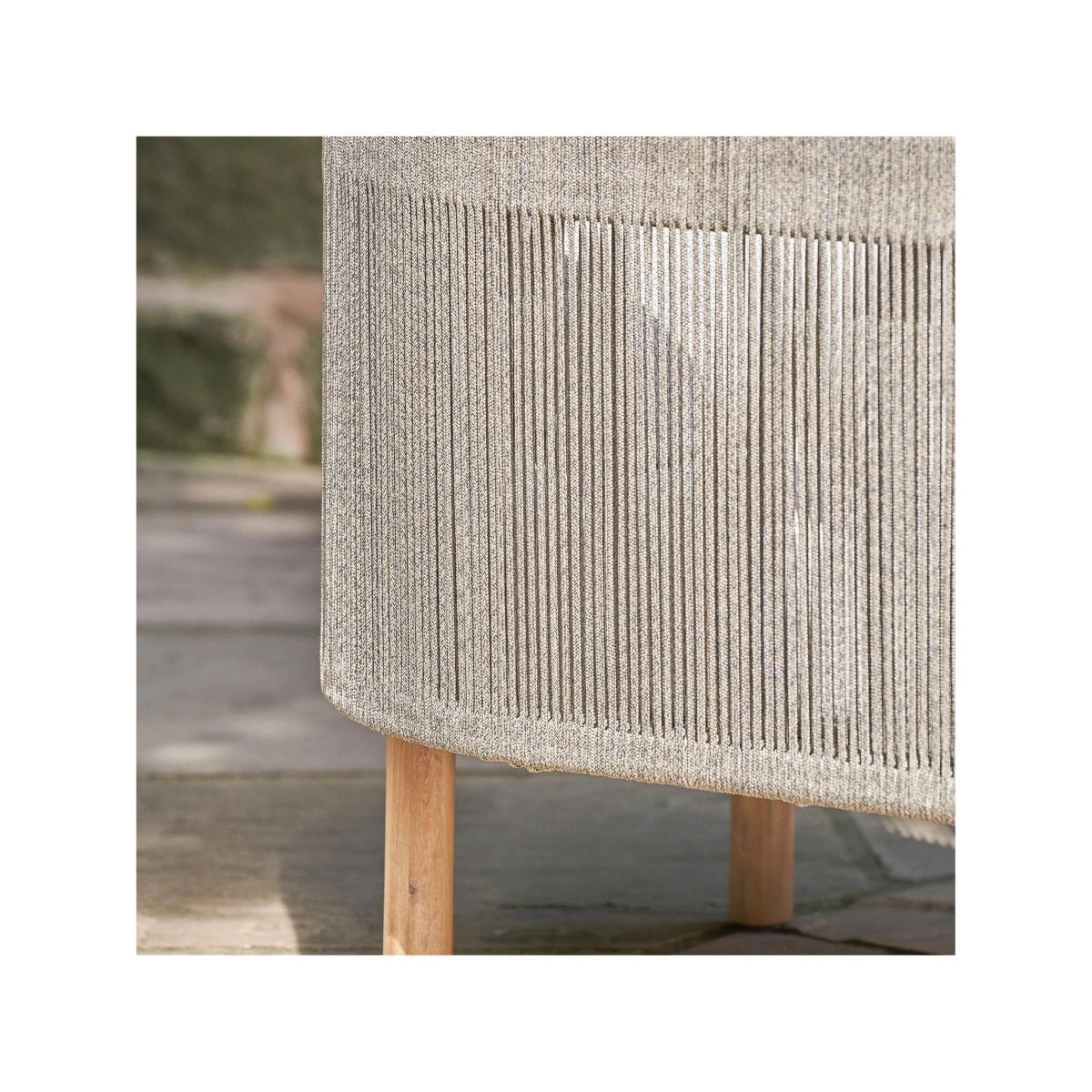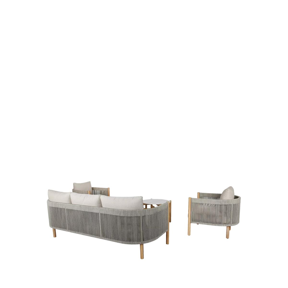 The Marche, made in Vietnam, gives your garden an update with an on-trend curved seat back design and synthetic rope weave. The four-seater garden lounge set features acacia wood frames and a large round coffee table and a small round coffee table with polystone tops which are durable and weather-resistant. Season-proof seat and backrest cushions provide comfort and are made of Olefin fabric that's highly resistant to staining and fading, and dries quickly. Key features: Large round coffee table and small round coffee table with polystone tops Two-seater garden sofa and two garden lounge chairs with a polyrope weave Naturally weather-resistant acacia wood frames Shower-resistant seat and backrest cushions included