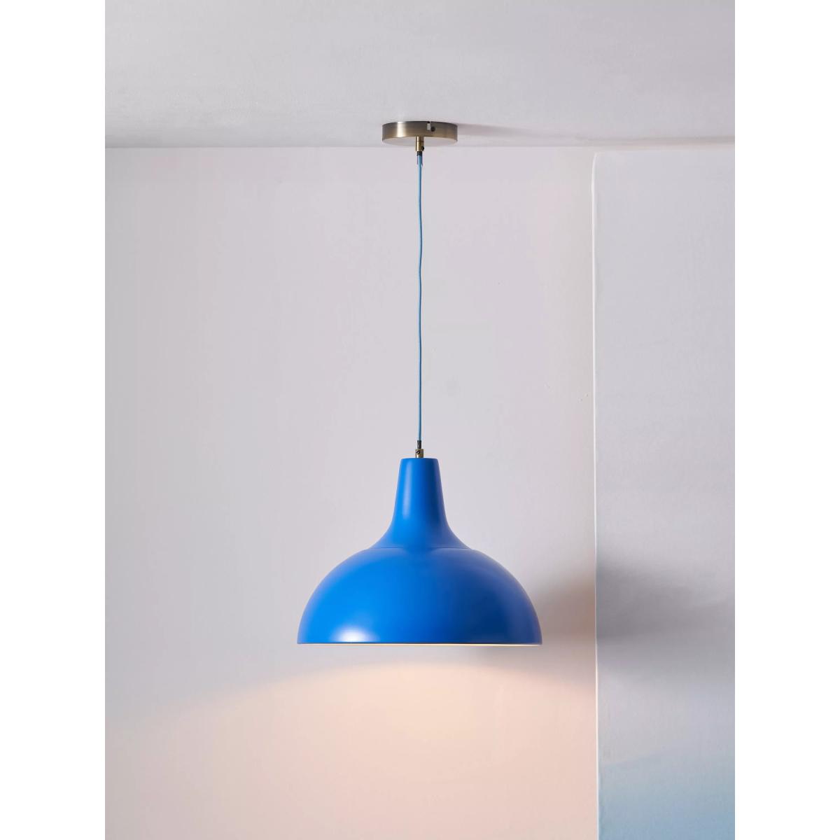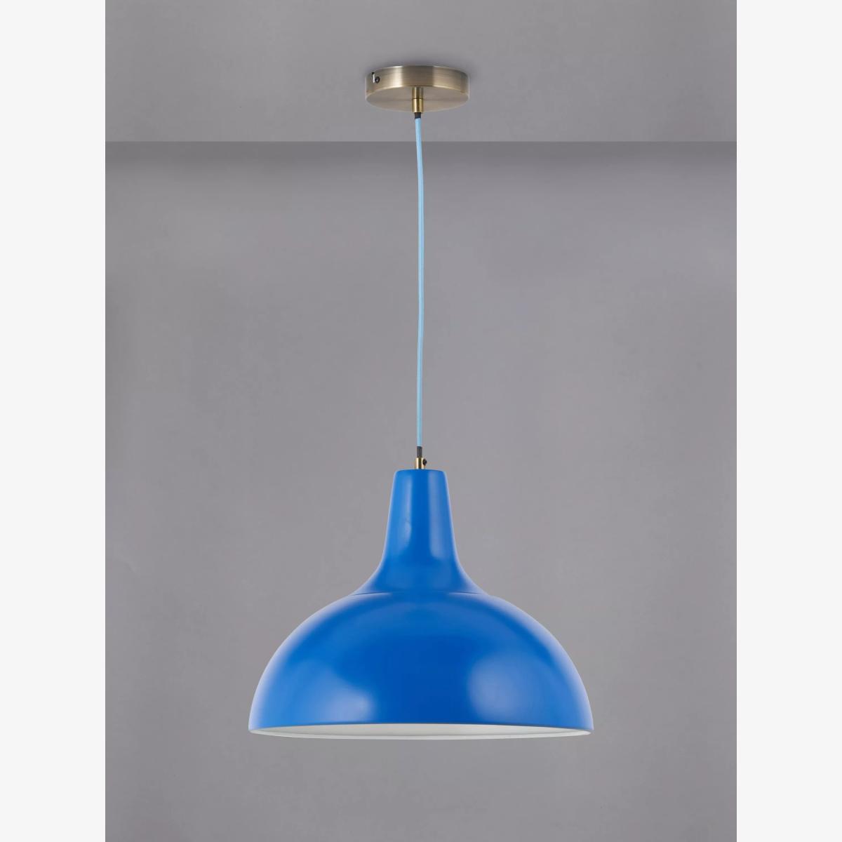 I love the contemporary feel of this pendant, with its bold colour and sleek silhouette. It's a versatile piece that works particularly well in modern kitchens, dining rooms, or even in a stylish home office. The bright blue makes it a statement feature, but it also pairs nicely with neutral palettes for a pop of colour. For practical styling tips, consider hanging it over a kitchen island or dining table where it can offer both illumination and visual interest. To keep the look cohesive, pair it with minimalist furniture and simple accessories, allowing the pendant to shine without competing with other design elements.