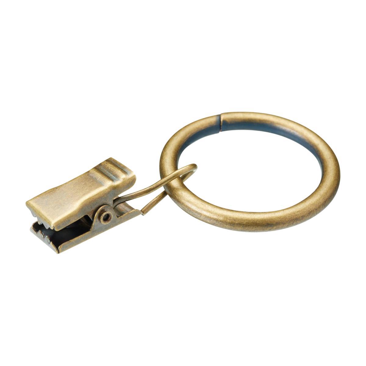 Pack of 12 25mm Curtain Rings with Clips Antique Brass