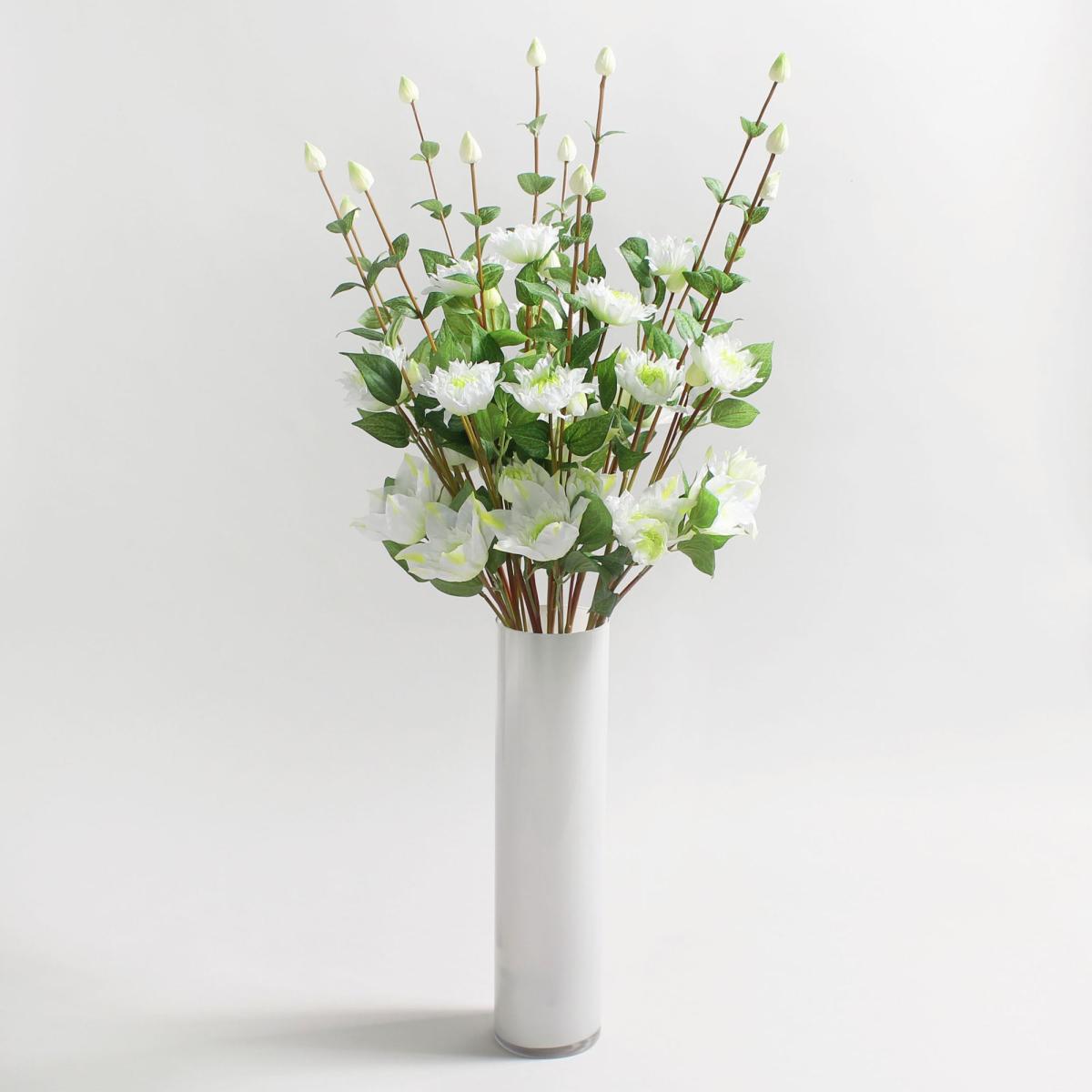 This bunch of cream clematis sprays is a versatile addition to any interior, especially if you're looking for a natural, fresh look without the maintenance of real flowers. I love how the neutral cream tone makes it easy to blend with various colour schemes, from soft pastels to bold contrasts. These stems work really well in narrow vases or as part of a mixed arrangement, and they instantly add height and texture to shelves, mantels, or dining tables. Practical styling tips include grouping several sprays together for a fuller display or combining them with greenery for a more natural, garden-inspired feel. Because they’re artificial, they’re perfect for high-traffic areas or spaces where flowers might not last, offering ongoing beauty with minimal effort.