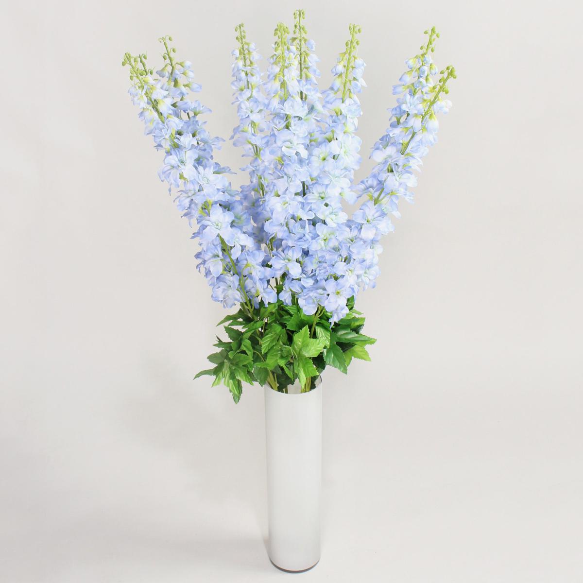 I love this bunch of artificial delphiniums because of their vibrant colour and realistic detail, making them a versatile addition to many interiors. They work particularly well in light-filled, contemporary spaces or traditional settings where a touch of colour is needed without the maintenance of real flowers. Stylistically, you can place them in tall vases to create eye-catching centrepieces or cluster a few together for a striking display on shelves or mantels. For practical tips, try mixing them with other faux blooms in complementary colours to add depth, and keep the stems trimmed to suit your vase height for an effortlessly polished look. They’re great for adding seasonal colour or softening a minimalist space, and since they require no watering, they’re a reliable choice for busy homes or commercial environments.