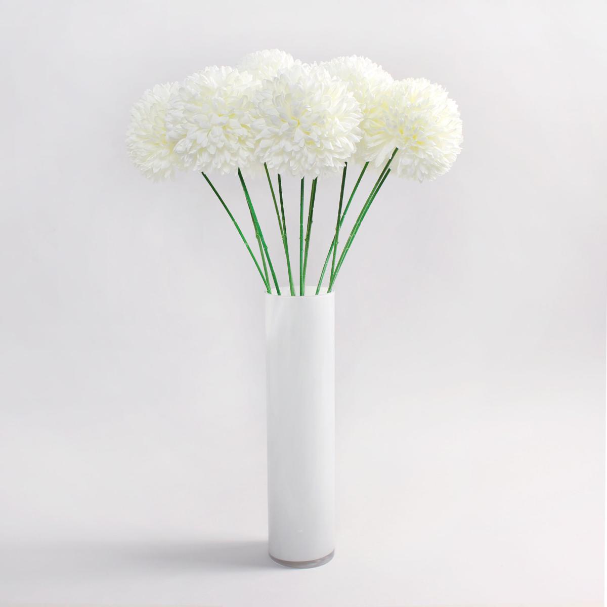 Designed in a range of subtle colours, this artificial pompom flower is crafted from durable materials and will add colour to your room. Available in a pack of 12. Please note: Vase not included.