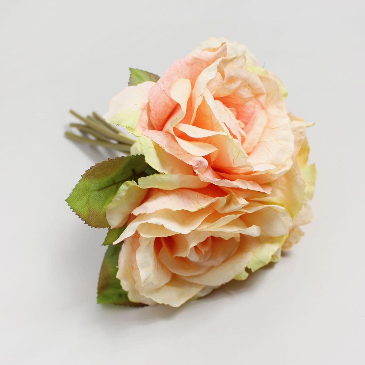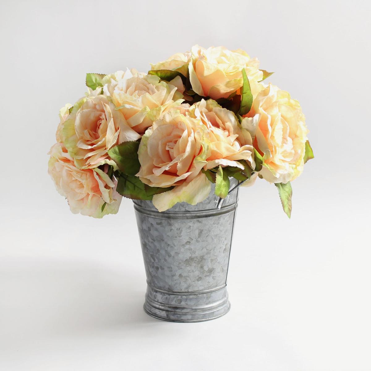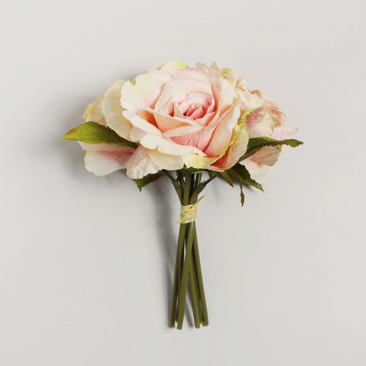 Fashioned with an antique design and delicate pink and cream flowers, this artificial rose bundle is complete with green leaves....
