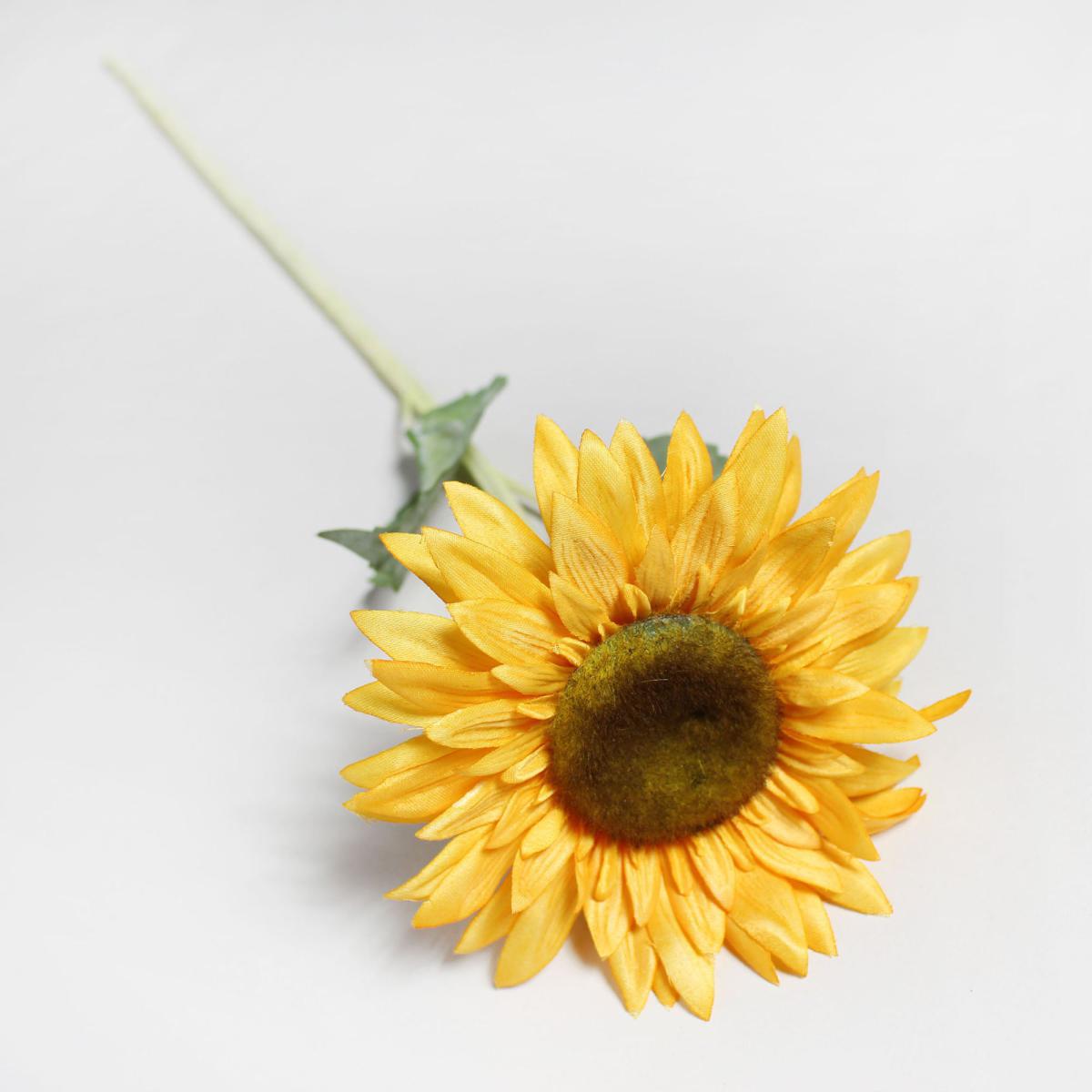 This artificial sunflower stem features a long stem and is ideal for adding to an existing floral decoration or standing alone in a vase.