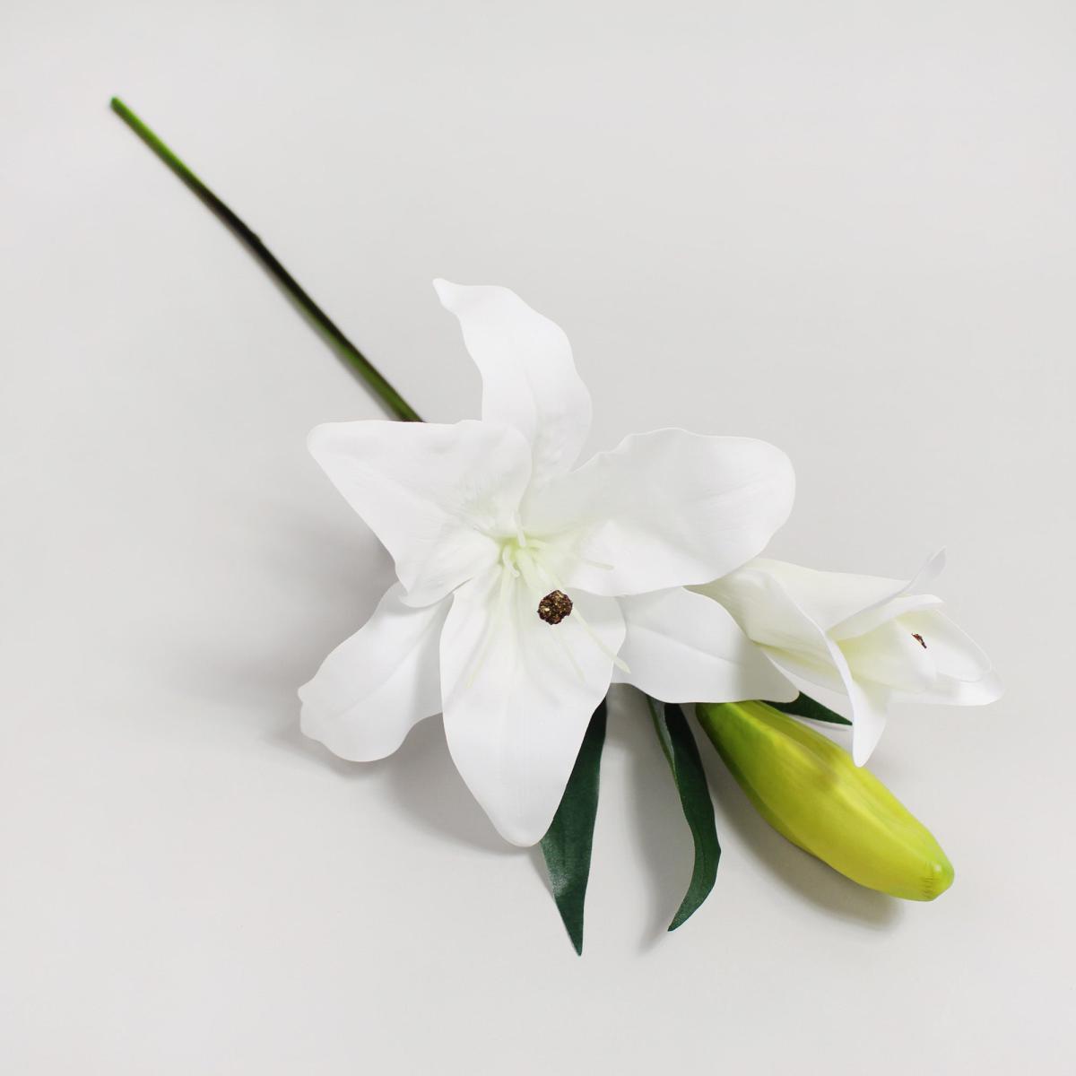 This artificial tiger lily spray features a long stem and large lily head with two buds and long green leaves that surrounds the flower. Available in a pack of 12. Please note: Vase not included.