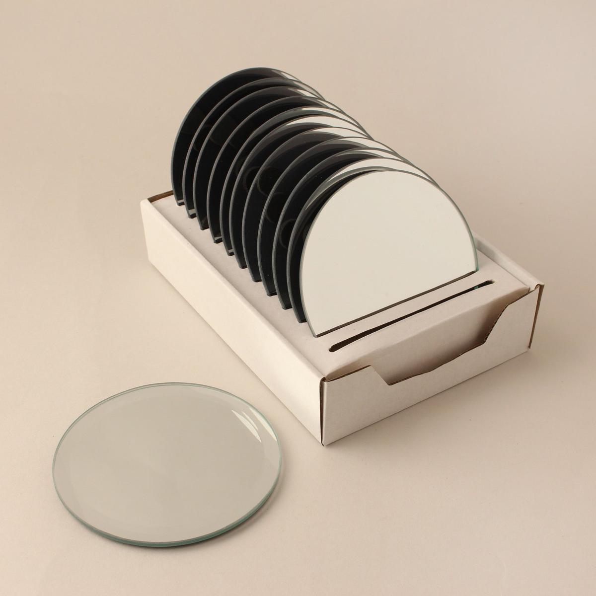 This circular mirror candle plate features a bevelled edge and a mirrored surface and will protect your surfaces from burn marks and spilled wax. Supplied in a pack of 12 this pack of candle plates is ideal for creating a stunning display or for use in table settings.