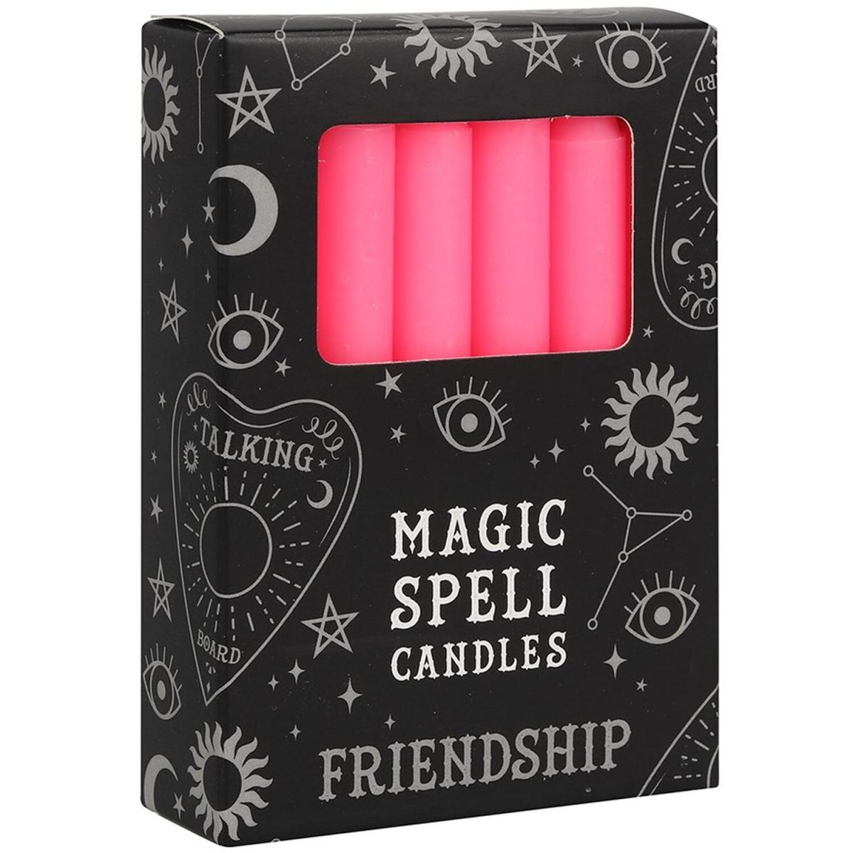 Pack of 12 spell candles, 10 cm in height. Each candle has approx. 1 hour burn time. Solid colours not dipped. Made from paraffin wax. Perfect for spell casters.