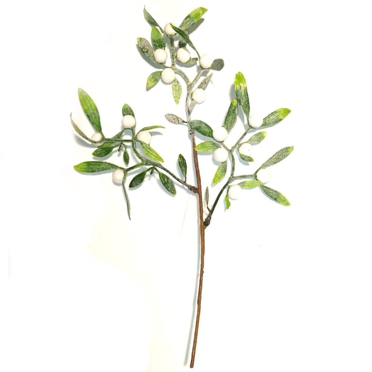 These lovely Artificial Mistletoe plants measure 32cm with a stem. Perfect for faux flower craft projects, Christmas decorations, gifts and with flower displays in lobby areas, hallways, living rooms and entertaining areas. Please note that the number of berries on each stem varies, there may be more or fewer berries than the image shows.2 Artificial Mistletoe plants. Green foliage with berries and glitter.
