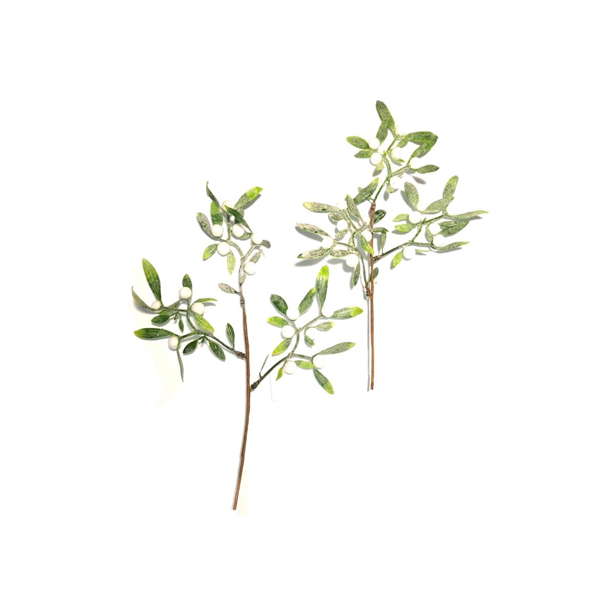 Pack of 2 Artificial Faux Glittered Mistletoe Sprays 32cm - Green