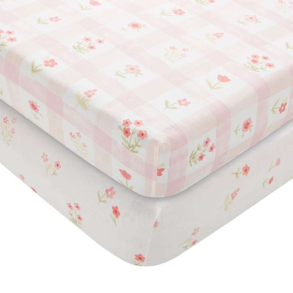 * Easy to care for, breathable Polycotton composition * Two Delicate floral designs * Machine Washable * Corresponding items available Brighten up bedtime with the cosy charm of our Floral Gingham fitted sheets. This sweet two-pack features a delightful pairing of tiny florals and classic gingham in soft pink tones—ideal for creating a bright, cheerful sleep environment. Made from a breathable polycotton fabric that’s gentle to the touch, each sheet features elasticated corners for a secure, stay-put fit, no matter how much your little one wriggles. Durable, machine washable, and irresistibly cute, these sheets are a dreamy addition to any child’s bedding set.