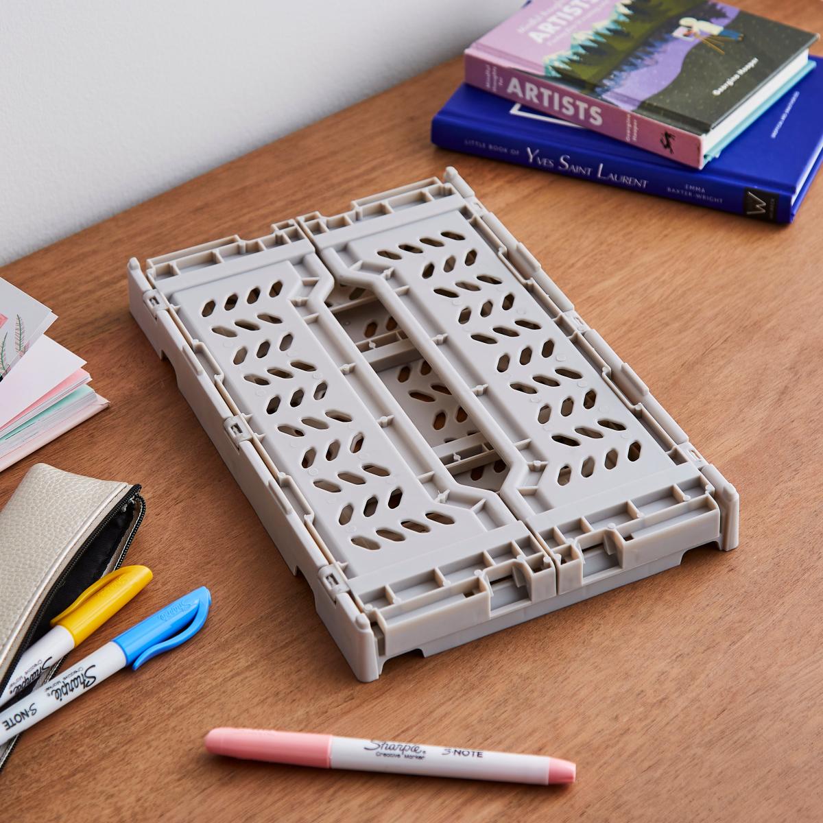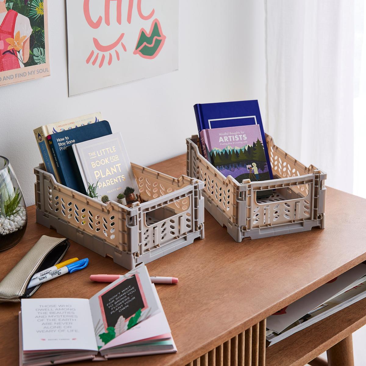 I love these crates for their practicality and sleek, neutral look. They work well in a variety of interiors, from modern minimal spaces to rustic or industrial-style rooms. The grey colour is versatile, making it easy to incorporate into different colour schemes, and their foldable design adds a functional edge for easy storage when not in use. Styling tips include using them as versatile storage solutions on open shelves or in laundry rooms for organising essentials, or even as display containers for decorative objects in living spaces. They're perfect for adding a touch of organisation without sacrificing style, especially when you want a practical yet unobtrusive storage option.