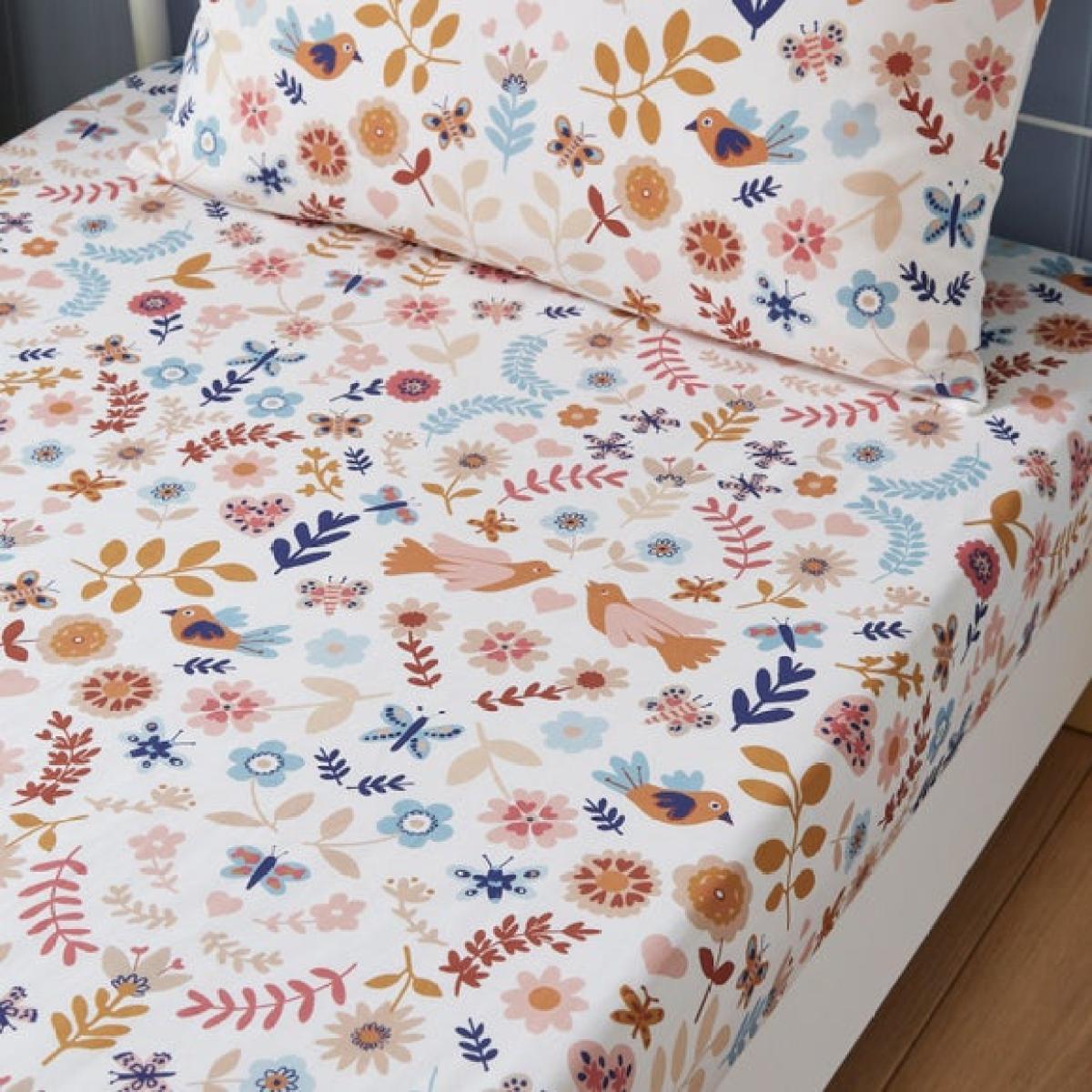 * Soft and breathable 100% Cotton Composition * Two playful designs inspired by Scandi Folk Art * Machine Washable * Corresponding items available Let the peaceful spirit of nature inspire your child’s sleep space with our Folk Floral fitted sheets. Brimming with delicate details—from ditsy blossoms to tiny perched birds—this enchanting design is rich with folk art charm. Crafted from 100% breathable cotton, these sheets offer natural softness and all-night comfort. The cheerful colour palette and secure elasticated edges make them both beautiful and practical. Perfect for layering with matching bedding, they’ll add warmth, wonder, and a whisper of the outdoors to your child’s room. This collection is verified by OEKO-TEX® and independently tested for harmful substances as well as manufactured using sustainable processes under socially responsible working conditions. MADE IN GREEN by OEKO-TEX® is a unique product label to trace the countries and production facilities - search the product label for more information.