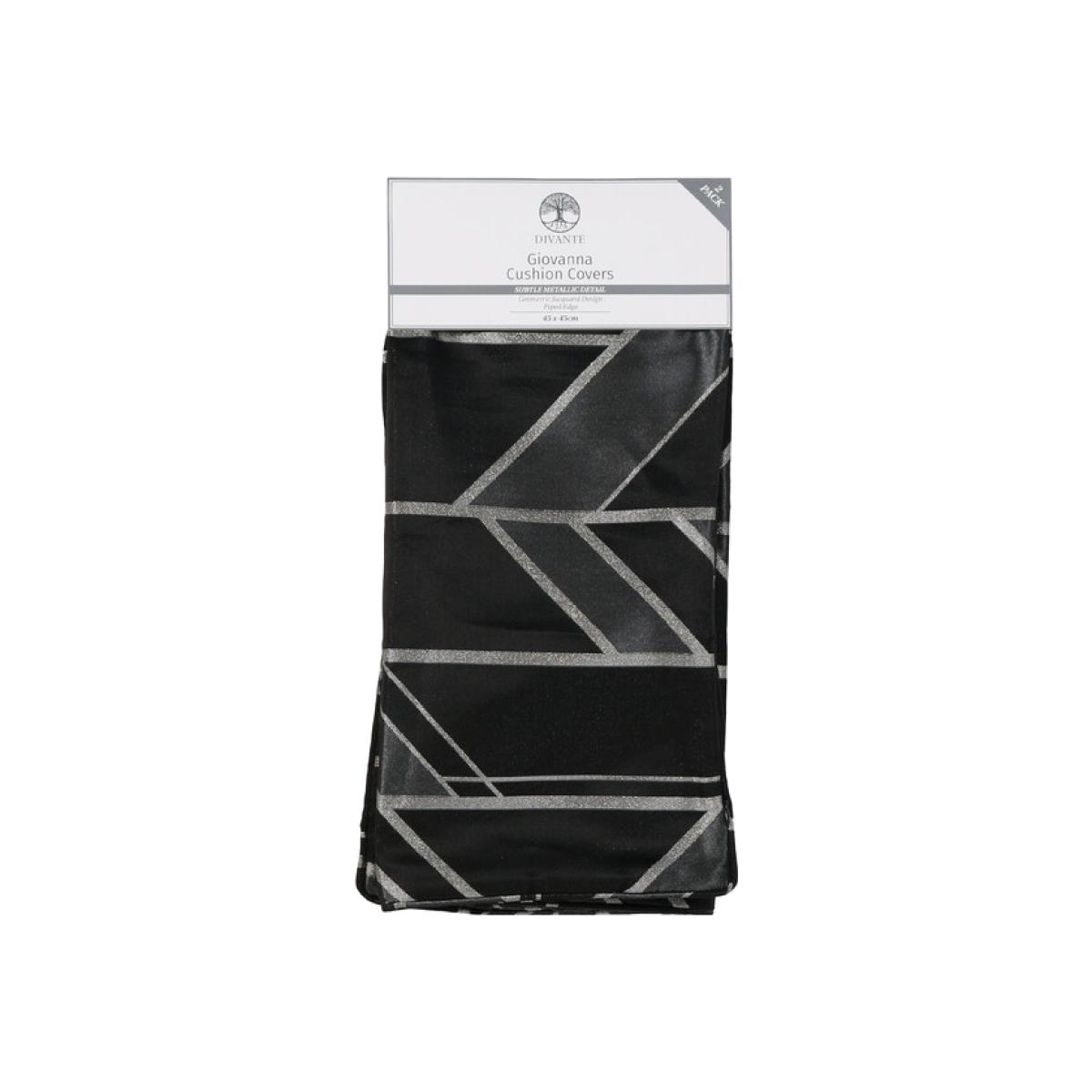 Need to refresh some accent cushions around your home? Then the Pack of 2 Giovanna Cushion Covers will bring a bit of glamour to any room you chose. These cushions are coloured a dramatic black and feature subtle metallic detail in the form of geometric shapes, ideal for those who love a modern aesthetic.