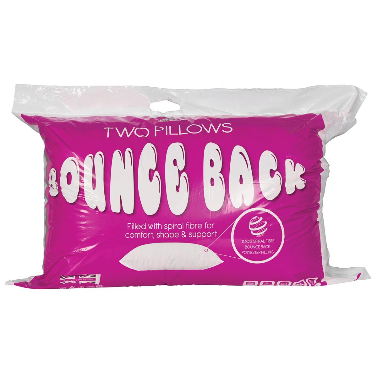 Give yourself more support while sleeping with this Pack of 2 Large Bounce Back Pillows. Using a spiral bounce fibre filling, these pillows offer more comfort than the average pillow, moulding to your shape more easily and bouncing back after you've slept. The extra filling allows for greater support in the head, neck, and shoulders, leading to an all round more comfortable sleep and life.