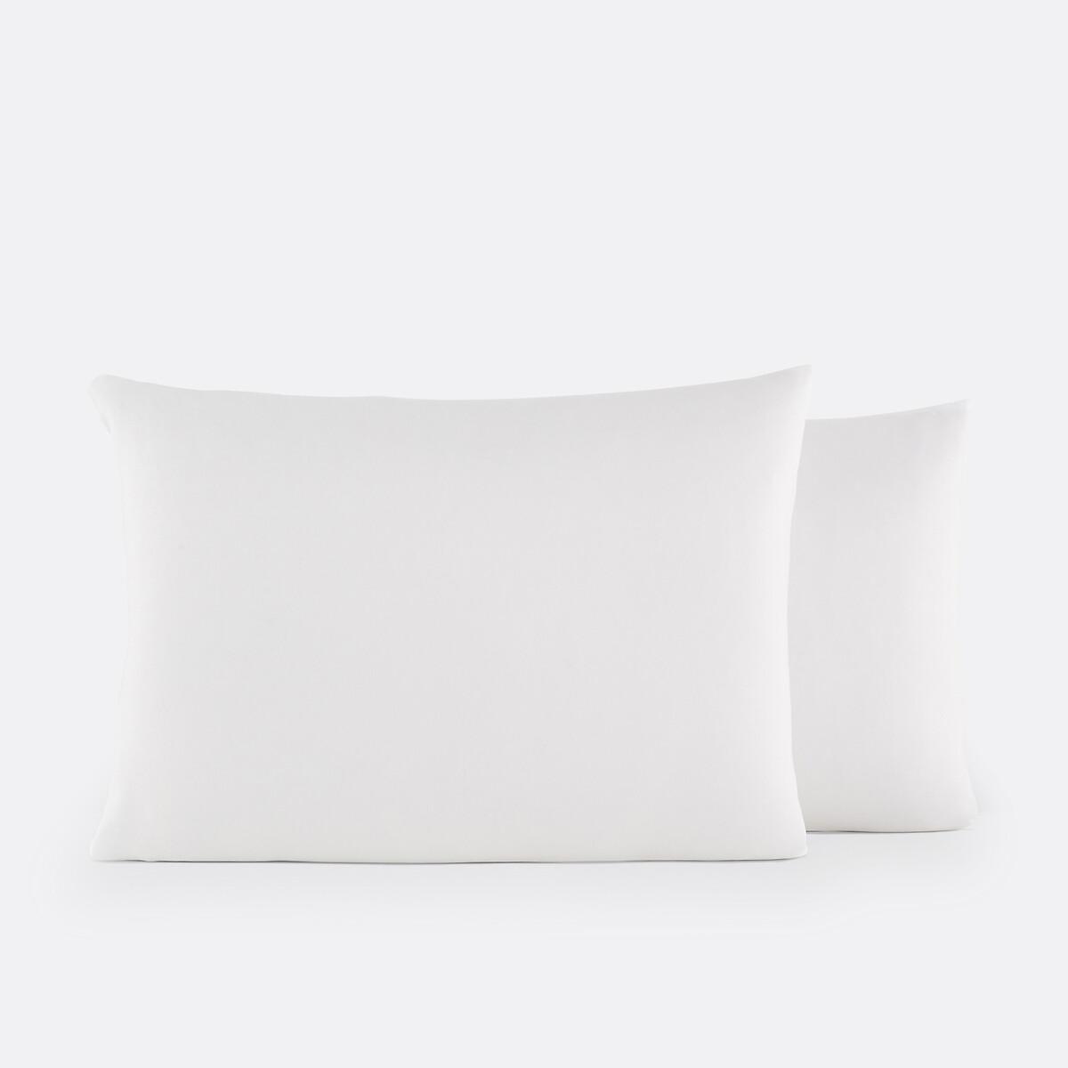 Pack of 2 recycled microfibre pillowcases. A timeless plain bed linen that is easy to combine with other sets. Soft, light and comfortable microfibre. Product Details • 100% polyester • Recycled microfibre • Set of 2 pillowcases. Care Advice • Machine washable at 40°CDimensions • 50 x 70cm: Rectangular • 63 x 63cm: Square • Recycled polyester. Using recycled polyester is all about conserving resources and reducing waste.