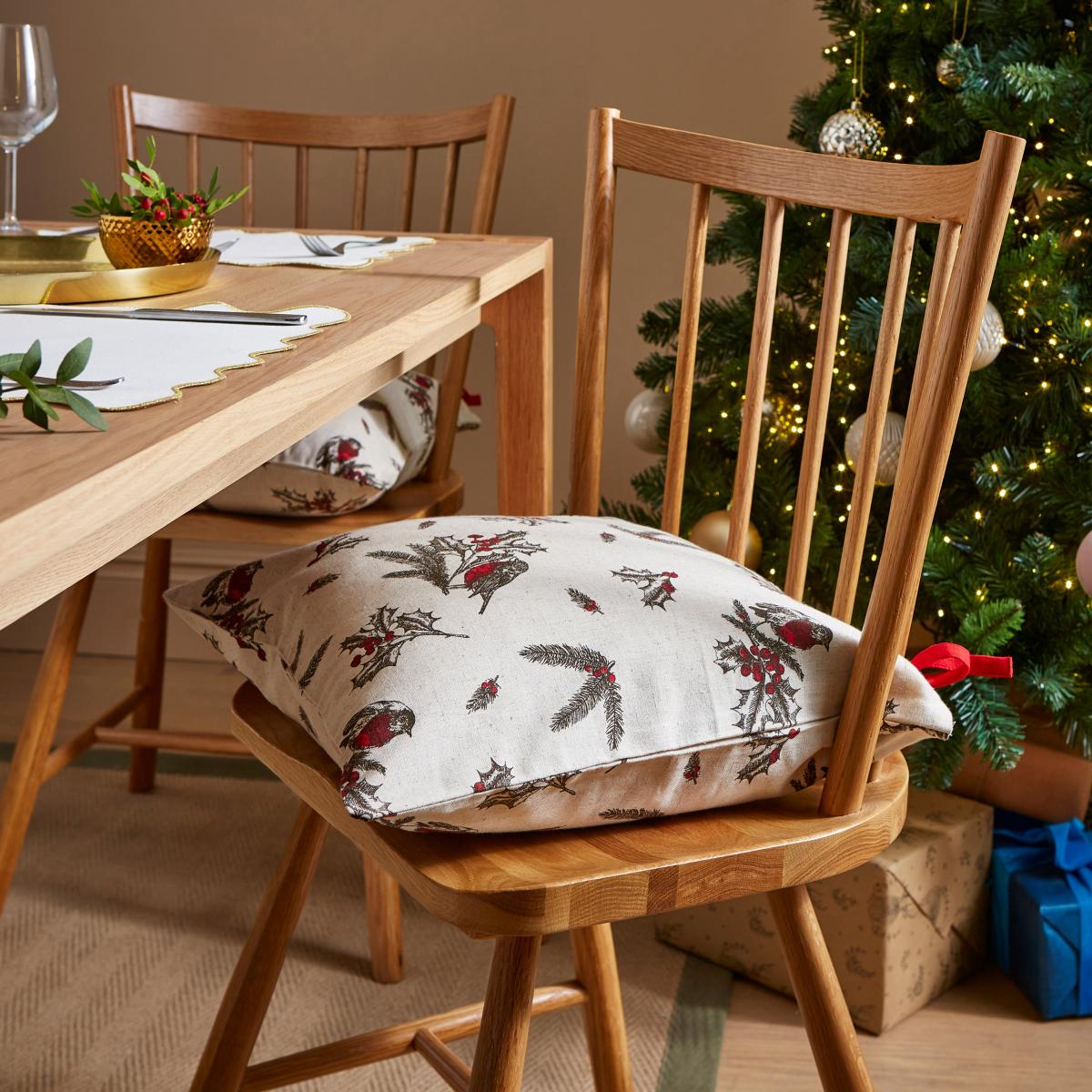 I love these Robin seat pads for their classic, natural look that complements both traditional and modern interiors. The neutral tone makes them versatile, working well in cosy kitchens, country-style dining rooms, or even pared-back, Scandi-inspired spaces. They add a layer of comfort without overwhelming the overall decor. Practical styling tips include pairing them with wooden chairs like in the photo for a warm, inviting feel, or mixing and matching with different upholstered seating for an eclectic vibe. They’re easy to swap out or layered with other textiles for seasonal updates, making them a practical yet stylish finishing touch.