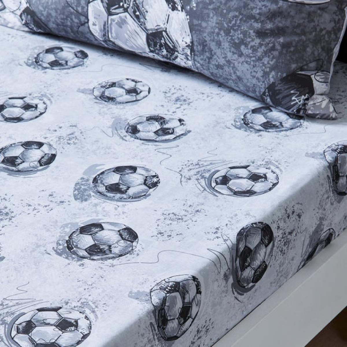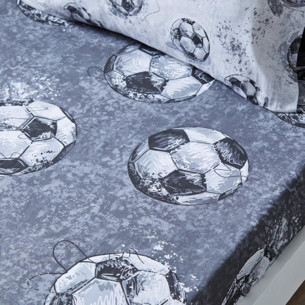 * Easy to care for, breathable Polycotton composition * Classic design * Machine Washable * Corresponding items available For little football fans, this Sketched Football fitted sheet set scores big on both style and comfort. Featuring hand-drawn football motifs across grey and white backgrounds, these sheets bring a sporty twist to bedtime while coordinating perfectly with the matching bedding collection. Crafted from a soft, hard-wearing polycotton fabric, they’re designed to keep up with energetic little dreamers. The fitted design hugs the mattress securely for a smooth, fuss-free fit, making it a great addition to any future striker's room.