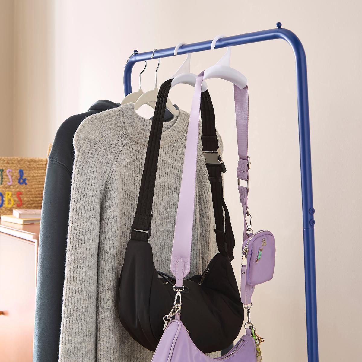 I’m a fan of these white bag hooks because they bring order to any rail without drawing attention to themselves - their simple plastic finish works particularly well in Scandi-inspired, minimalist or contemporary spaces. They’re lightweight yet sturdy, so you can maximise storage in hallways, bedrooms or even home offices without compromising on style. For a neat look, group two or three hooks down one side of your rail and hang all your everyday totes or cross-body bags together. In a walk-in wardrobe they’re a great way to keep belts, scarves or lightweight pouches organised and easy to reach.