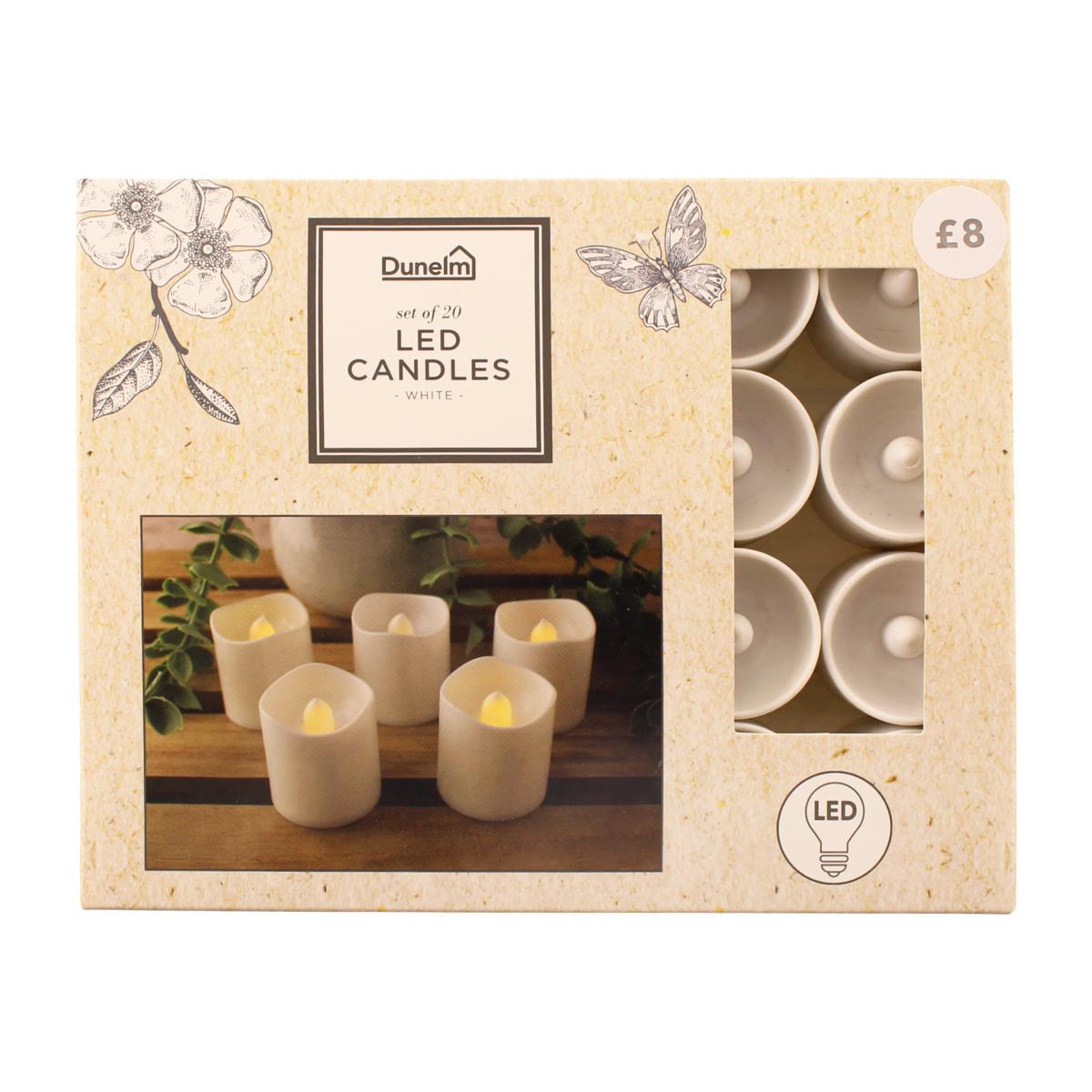 This pack of 20 LED candles has a traditional white colourway that will complement an array of decors. The realistic-looking flame makes these the perfect pieces for a wedding room or table décor.