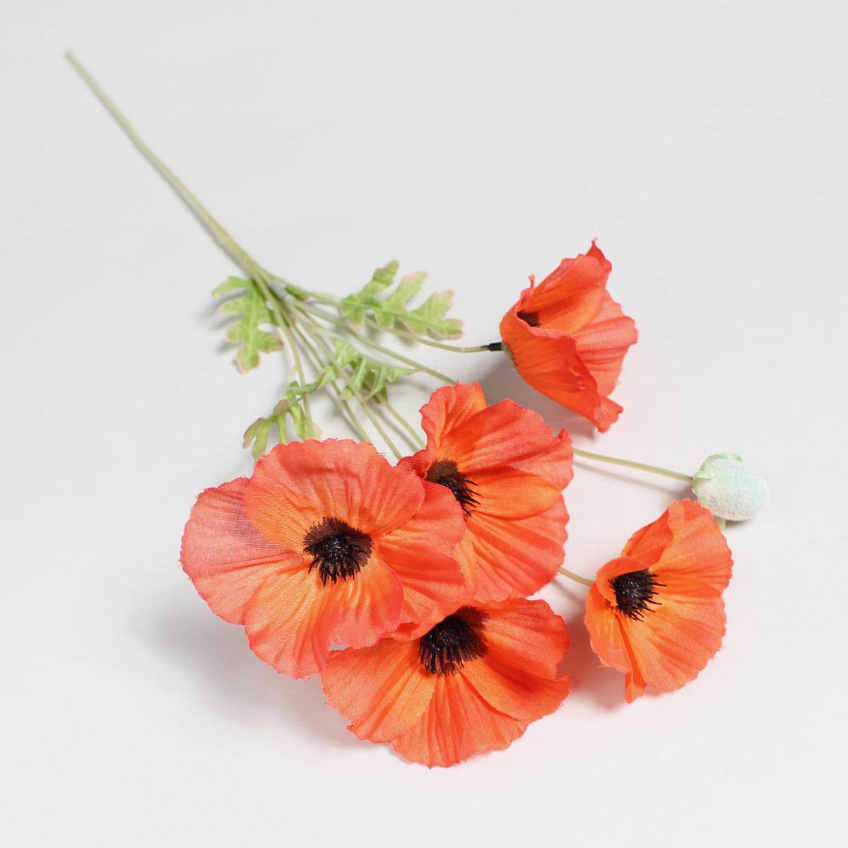 Pack of 24 Artificial Poppy Red Stem 62cm Orange