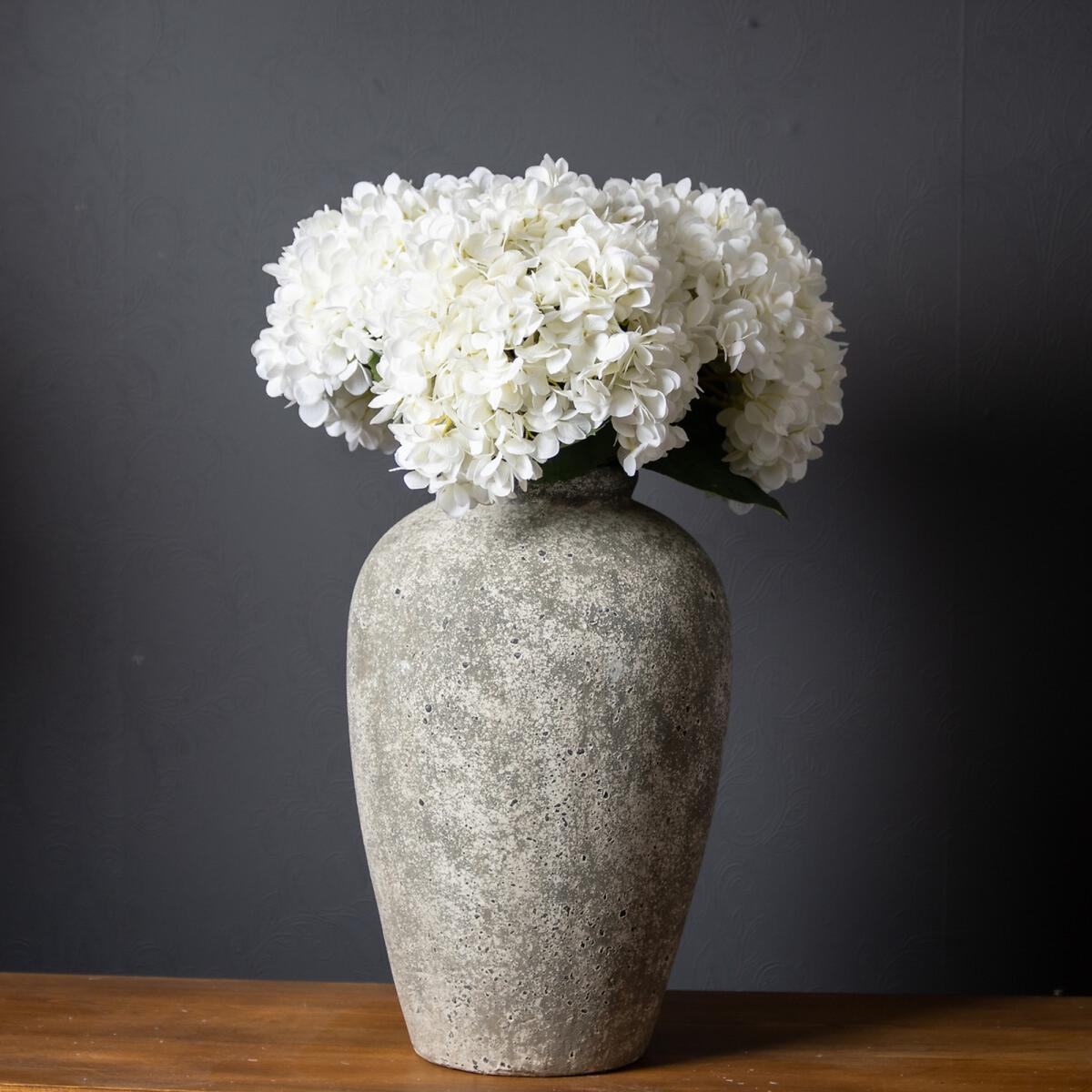 These oversized white hydrangea stems are great for creating a fresh, clean look without the maintenance of real flowers. I love how their substantial size makes a statement, perfect for large arrangements or as a focal point in a minimalist interior. They work well in neutral or monochrome spaces, adding a touch of elegance to a console table, open shelving, or even as a centrepiece in a dining room. For practical styling tips, consider grouping them in a tall vase or combining them with other faux botanicals for added texture. They’re particularly useful in high-traffic or light spaces where real flowers might wilt quickly and need constant replacement.