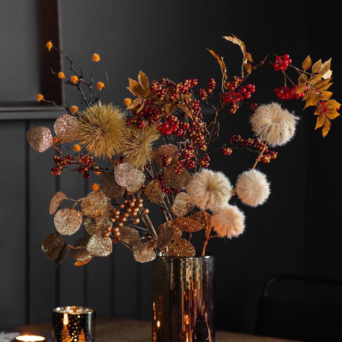 I love this pack of three autumnal berry sprays for adding instant seasonal flair to any space. Their rich reds and earthy tones make them particularly versatile for festive displays, whether in a vase on a dining table or clustered in a minimalist console arrangement. They work well in both modern and traditional interiors, providing colour and texture without the upkeep of fresh foliage. For practical styling, try mixing the sprays with brass or matte accessories to evoke warmth, or dangle a few from a chandelier for a curated seasonal touch. These sprays are a practical and stylish way to bring the colours of autumn into your home all year round.