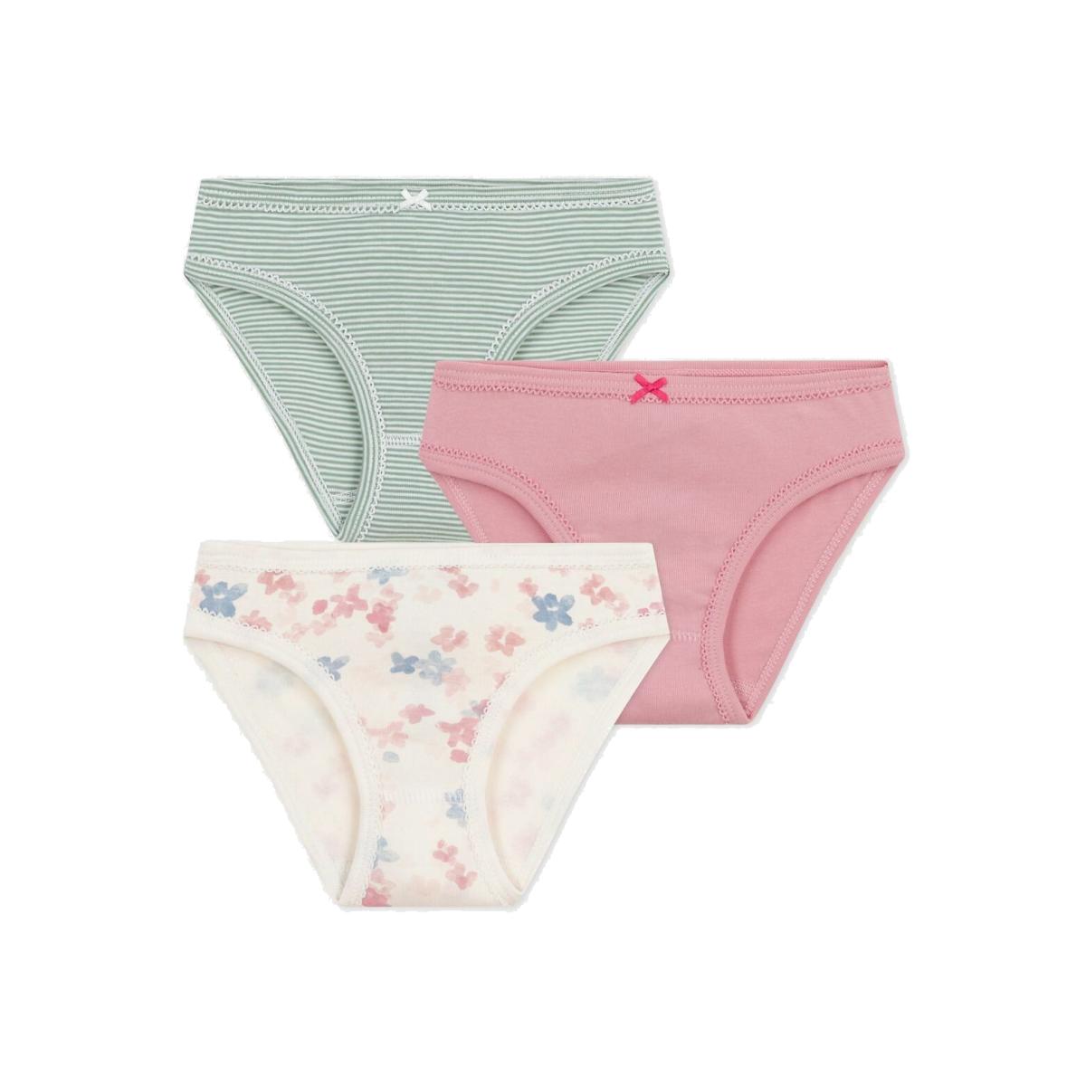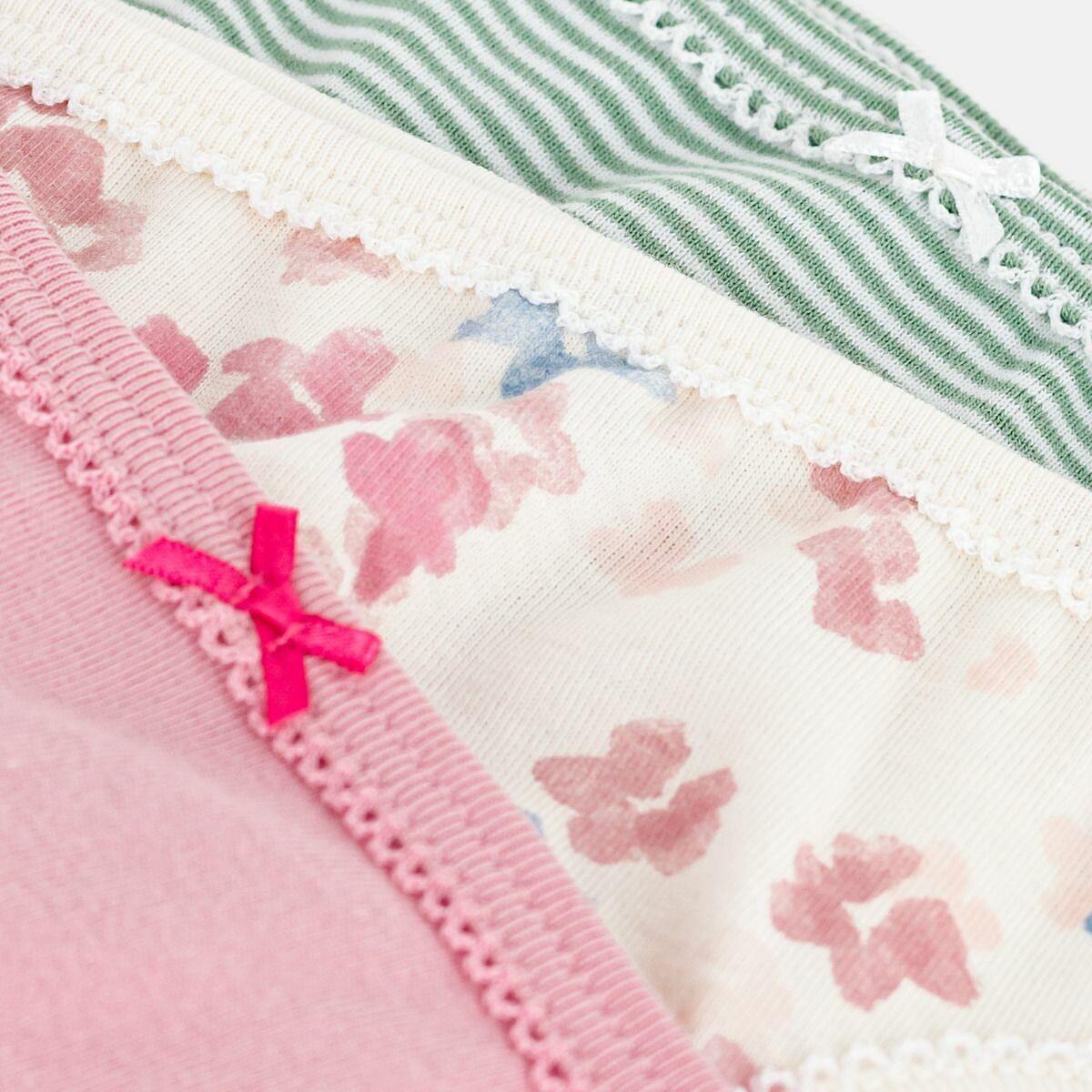 Product details • Knickers • Fabric: cotton • Pack of 3: 1 striped + 1 plain + 1 floral print • Picot trim detail. Fabric content and care advice • 100% cotton • Please refer to the care instructions on the product label • OEKO-TEX® Standard 100. Standard 100 certification by OEKO-TEX® tests textile products for harmful substances via an independent, international label.