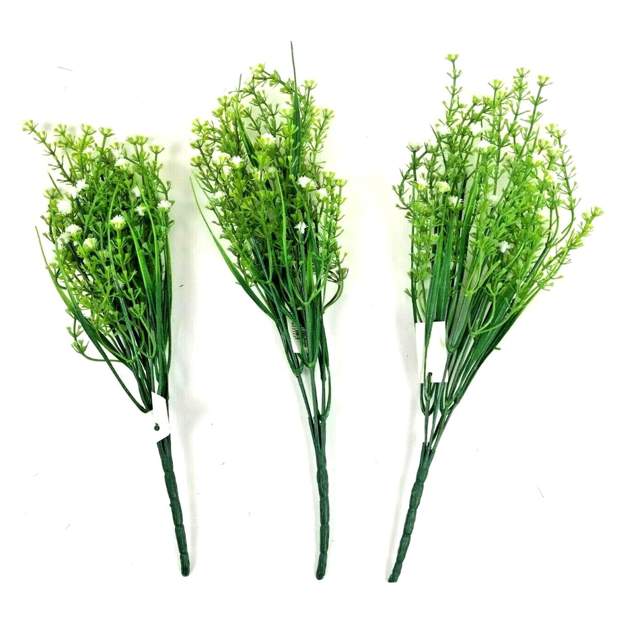 Pack of 3 Grass and Gypsophila Sprays Plants with White Flowers - Green