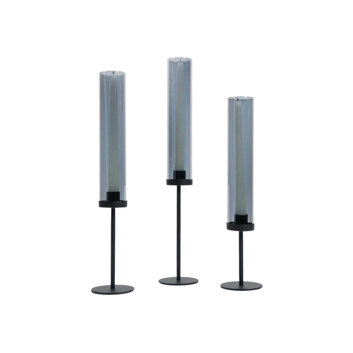Pack of 3 Smoked Taper Candle Holders with Covers - Black