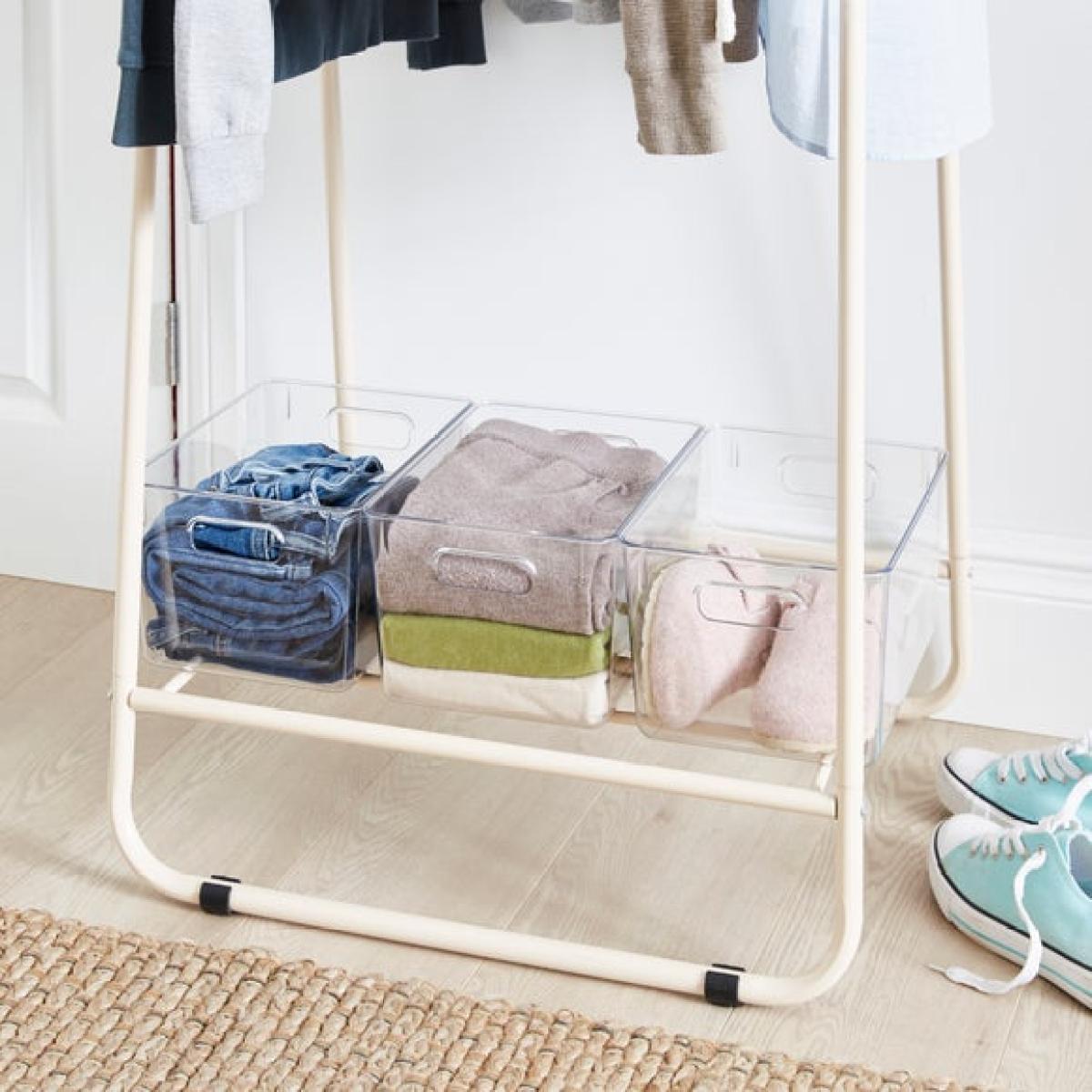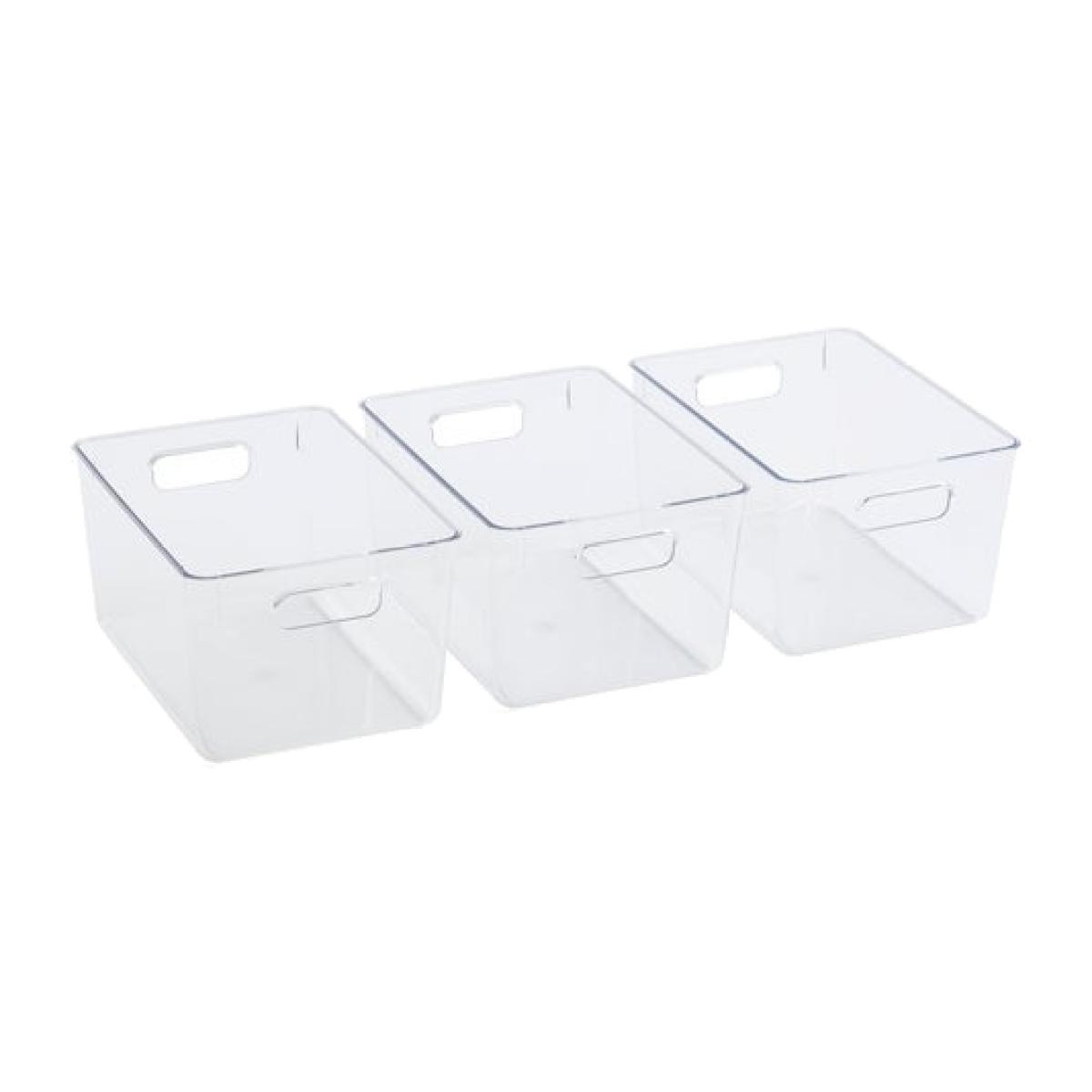 * Set of 3 * Stackable * Clear plastic to make it easy to find what you need Keep things neat and easy to find with this Pack of 3 Stackable Storage Bins. Made from clear plastic, they let you see exactly what's inside, no rummaging required. Ideal for organising cupboards, drawers, or even your home office essentials. The stackable design saves space while keeping everything tidy and close to hand. Whether it's stationary, snacks, or cables, these bins are a simple way to stay organised. Practical, versatile and refreshingly fuss-free.