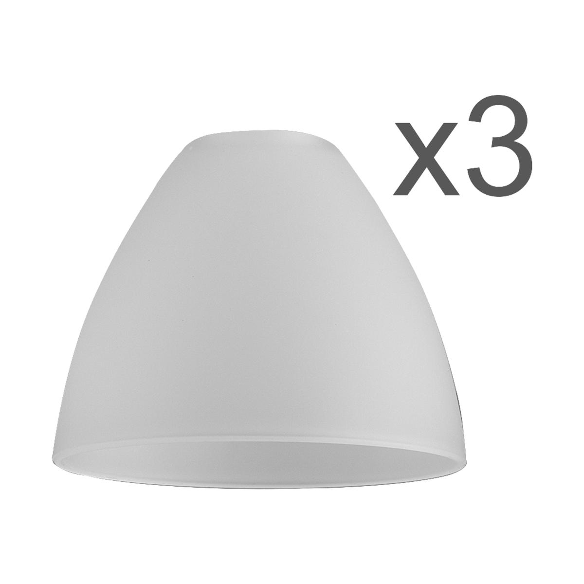 Set of 3 frosted white glass replacement light shades. Ideal to replace missing or broken light shades on ceiling or wall lights. Or simply replace your current light shades to give your light fittings a new look.