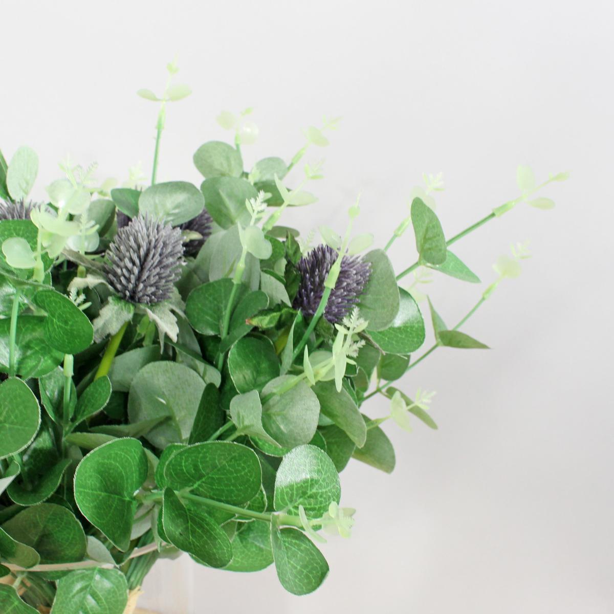 Ideal for display in a vase or as event decor, these stunning thistle and eucalyptus bundles tied with raffia have detailed thistles and printing on the leaves, providing a highly realistic finish. The purple thistles stand out against the green eucalyptus, bringing a pop of colour to any room of the house.