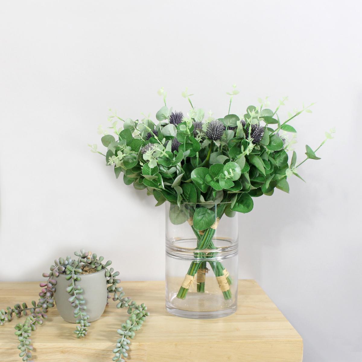 I love this bunch for their versatility and natural aesthetic-they add a fresh, calming touch without the maintenance of real flowers. These lilac thistle and eucalyptus stems work especially well in minimalist or modern interiors, but can also bring a touch of nature to more cosy or traditional spaces. Practical styling tips include grouping them in clear jars or combining with other faux greenery for a layered look. They’re ideal for creating centrepieces on dining tables, adding detail to shelves, or brightening up sideboards without worrying about wilting. Their neutral yet slightly colourful palette makes them adaptable across different colour schemes, making them a reliable go-to for easy, stylish decor.