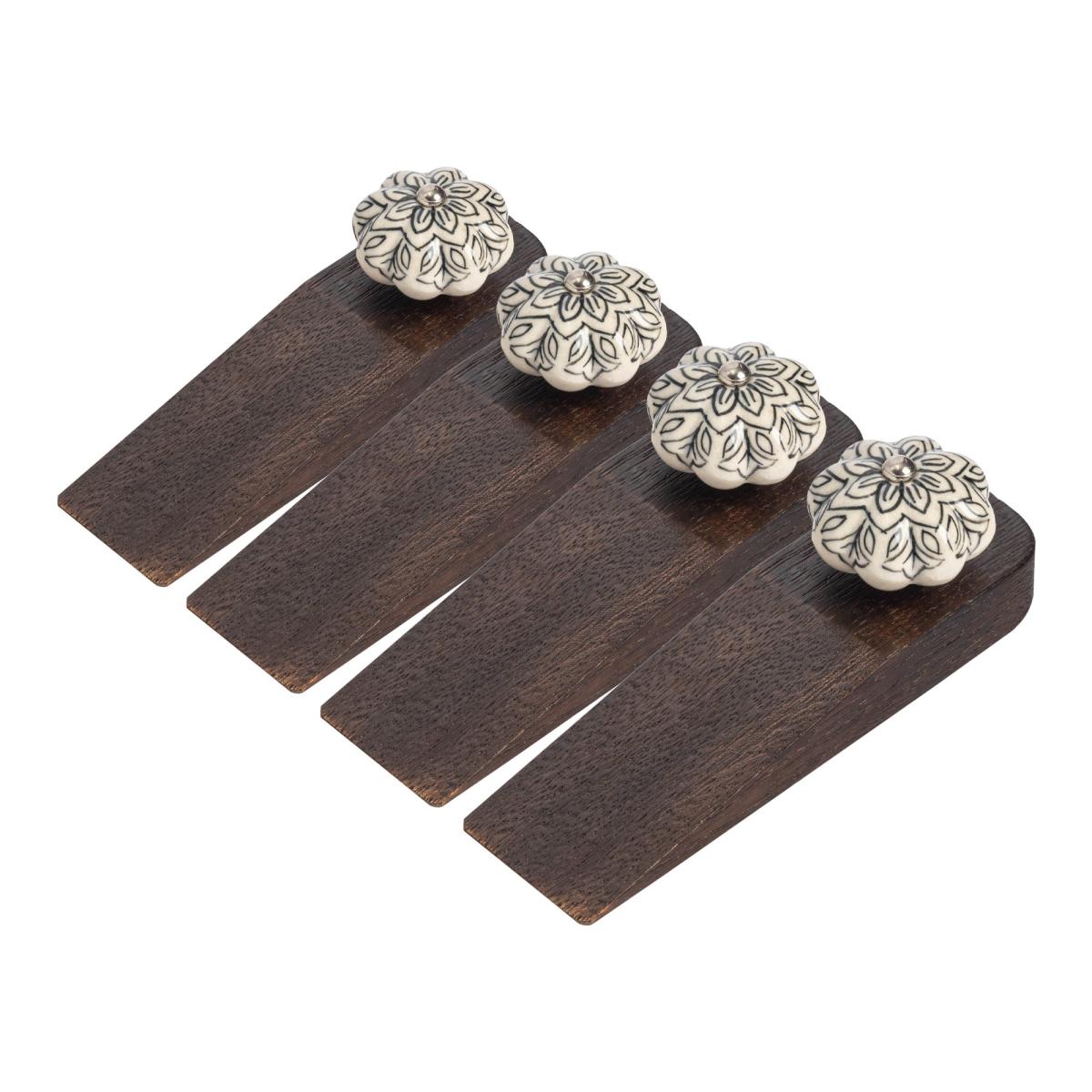 Pack of 4 Nicola Spring Flower Wooden Door Stops Black