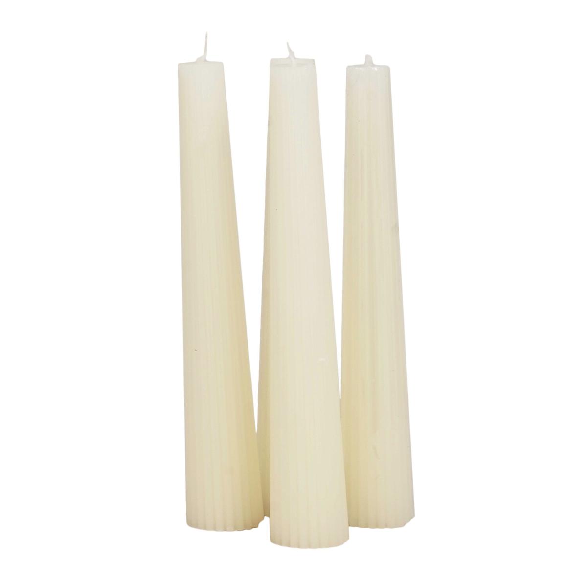 I love these candles for their minimalist and textured look; the ribbed detail adds subtle interest without overwhelming a space. They work particularly well in Scandi-inspired interiors, adding warmth to neutral palettes, but can also bring a touch of sophistication to modern or even rustic settings. When styling, place them in a simple glass or ceramic holder to enhance their understated elegance, and group them on a dining table or mantel for an impactful centrepiece. For a more layered look, combine with faux foliage or metallic accents, and don’t forget to choose complementary colours to keep the arrangement cohesive.